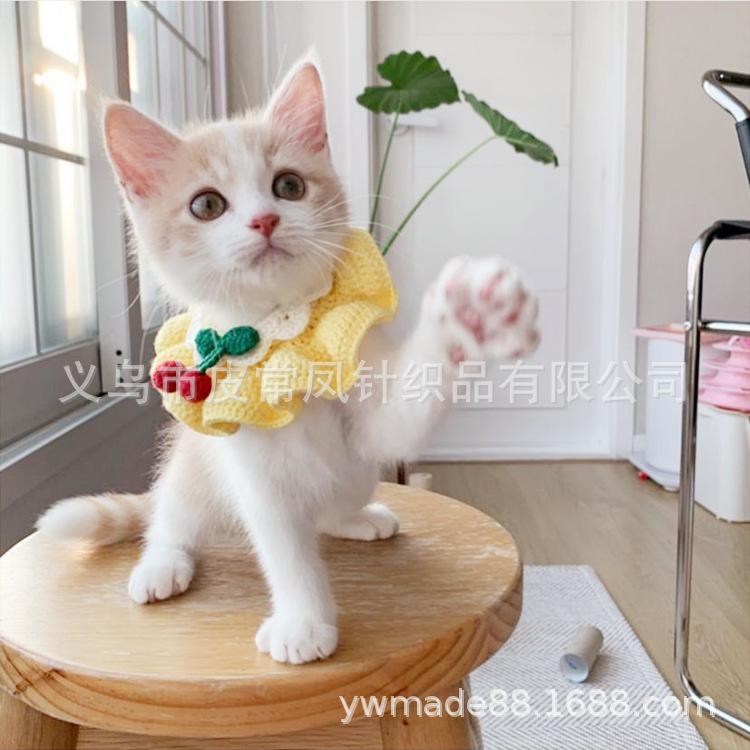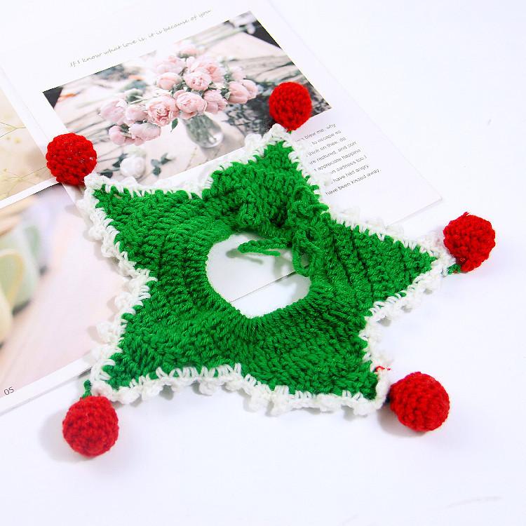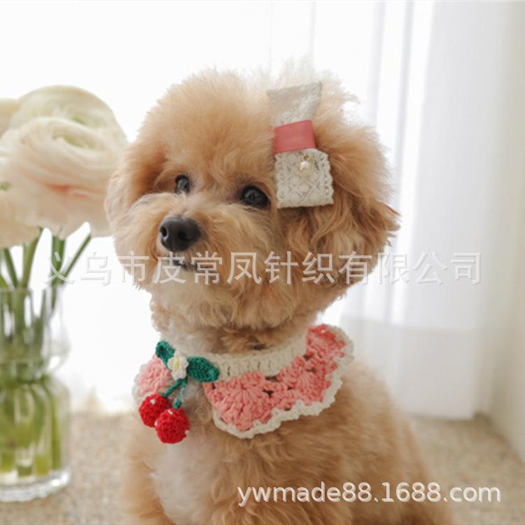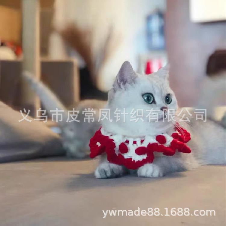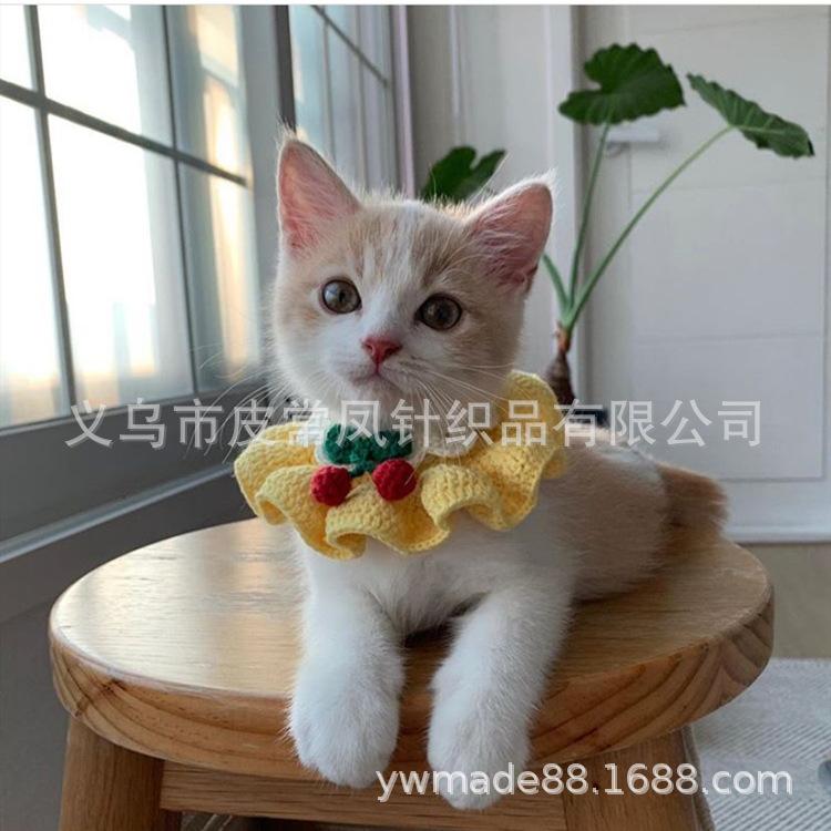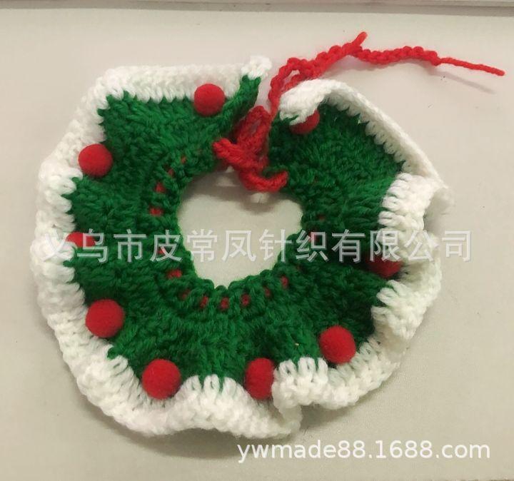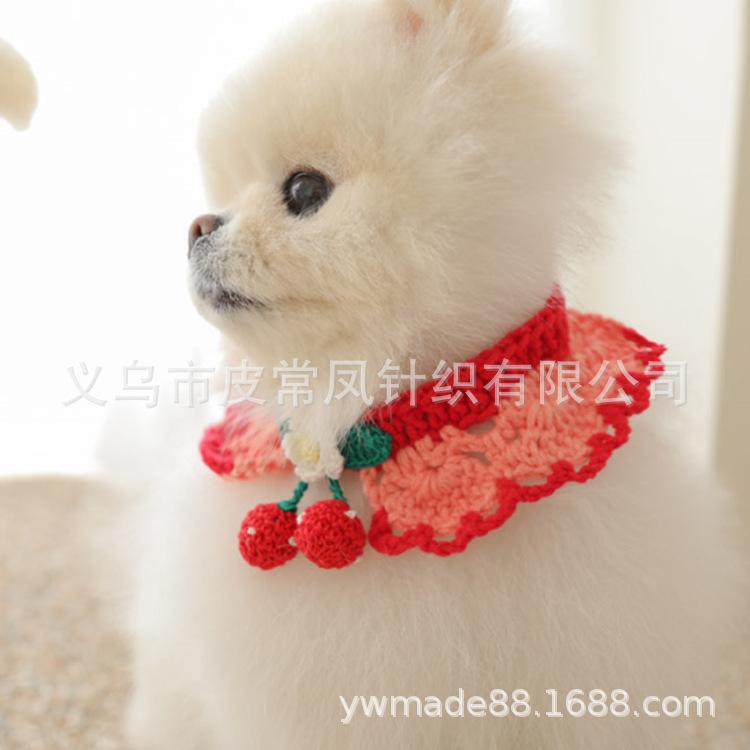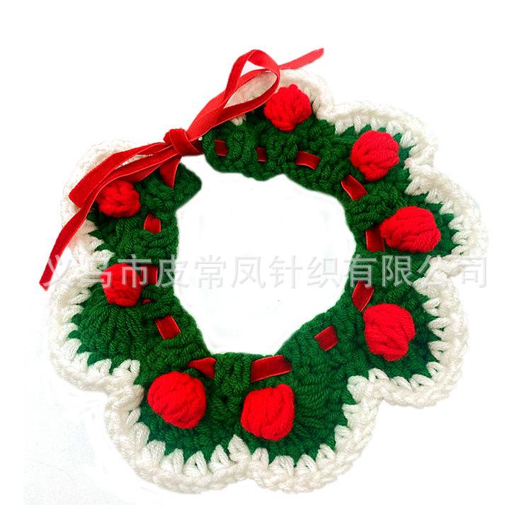 Collar Navideño para Mascota Gato Perro Pequeño Cereza Lana Encaje Tejido Bufanda de Saliva Fabricante de Bufandas Gatito al Por Mayor