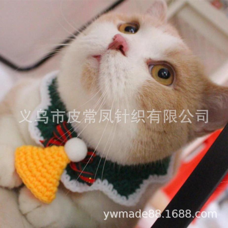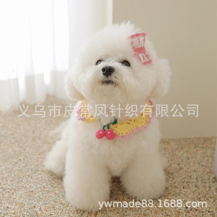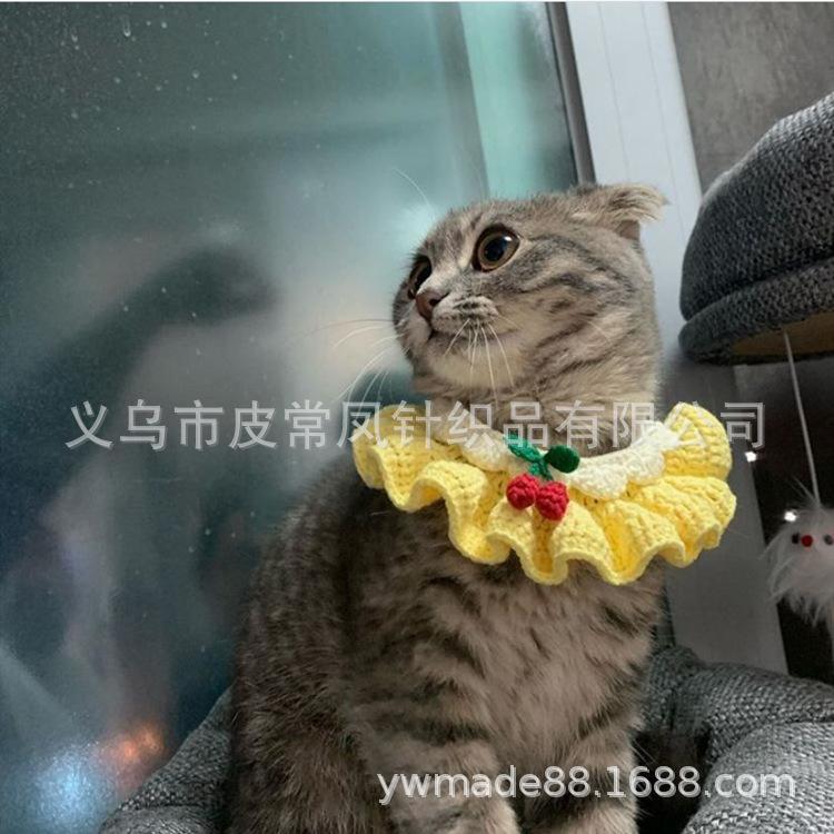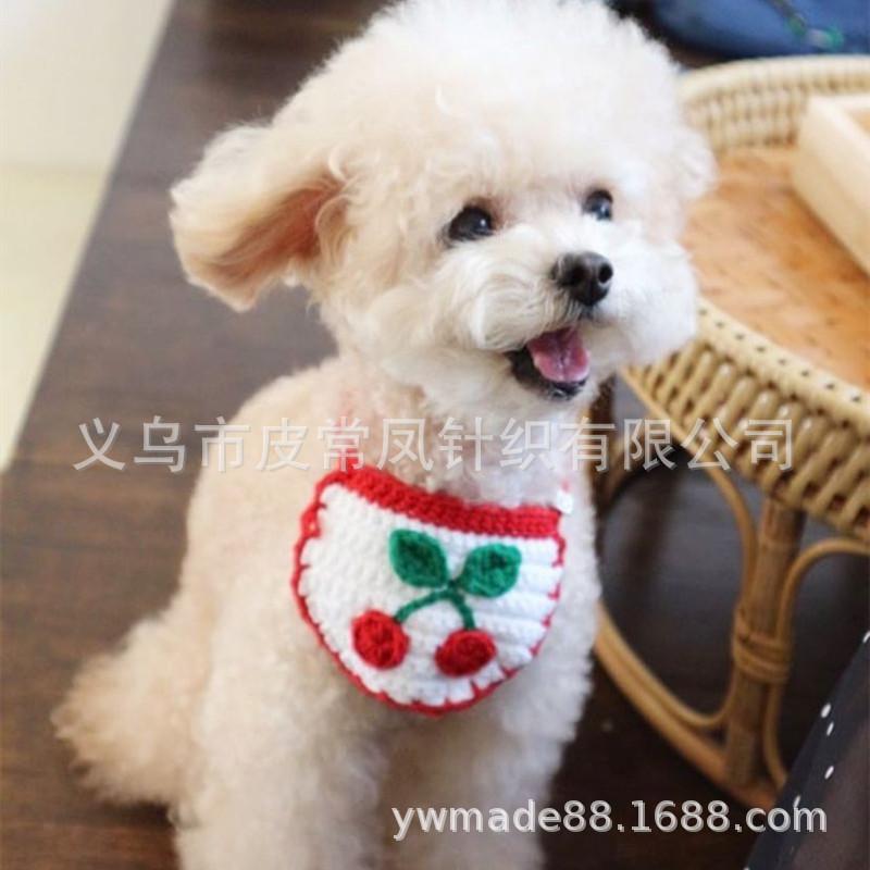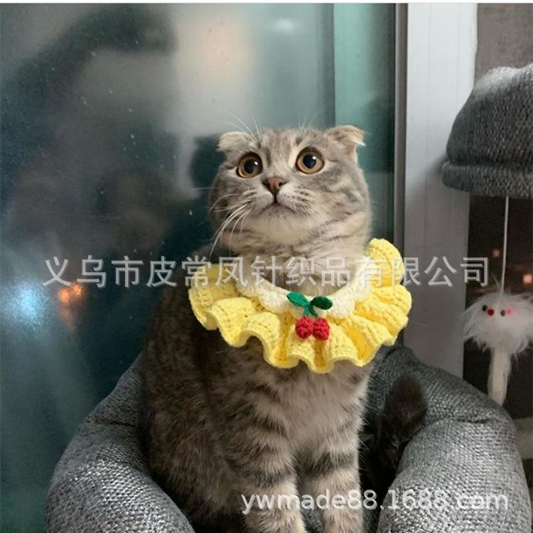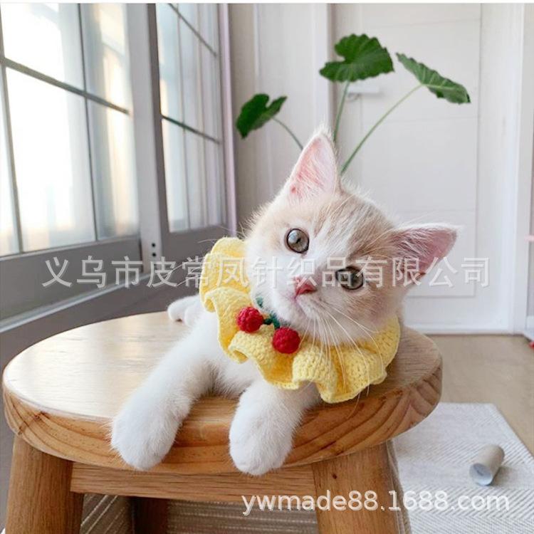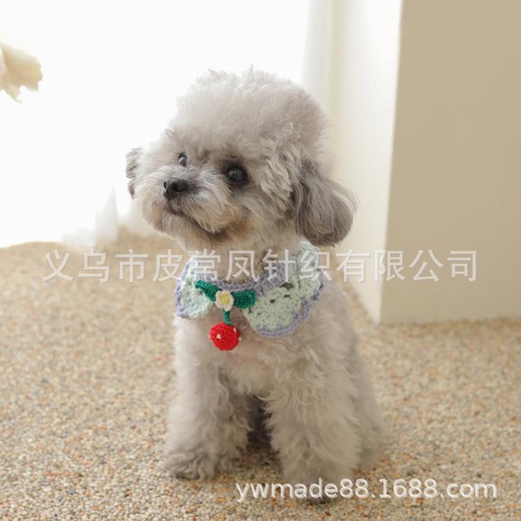 Collar Navideño para Mascota Gato Perro Pequeño Cereza Lana Encaje Tejido Bufanda de Saliva Fabricante de Bufandas Gatito al Por Mayor
