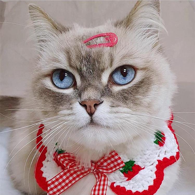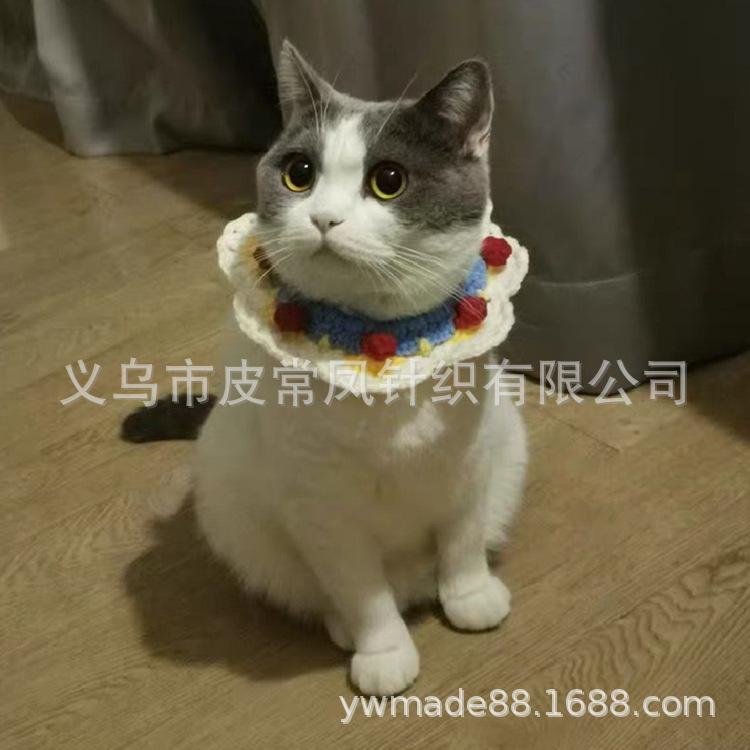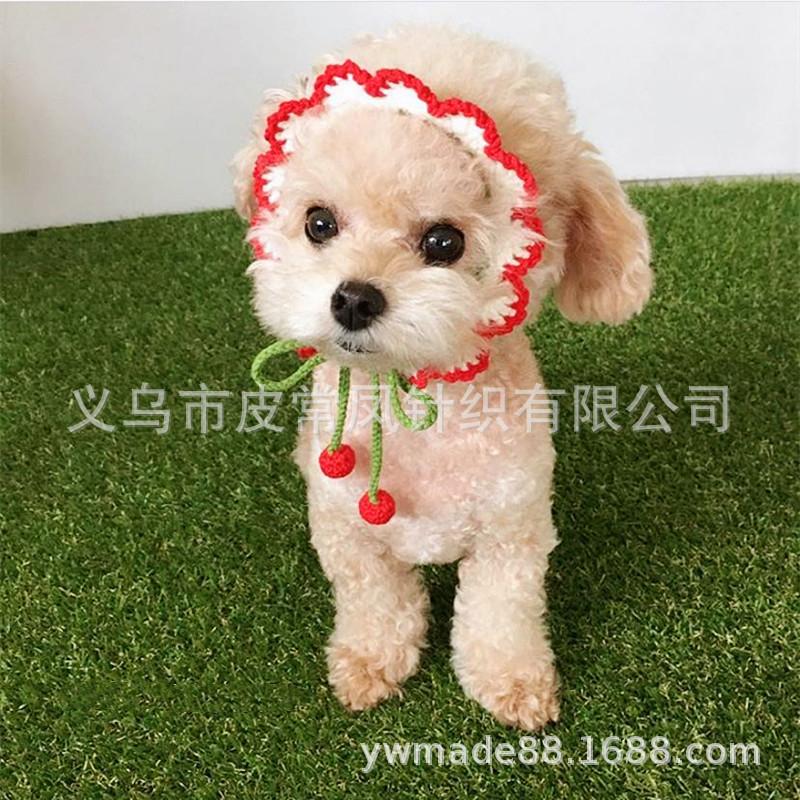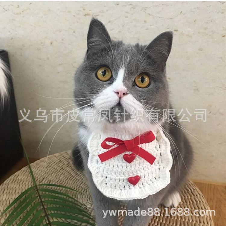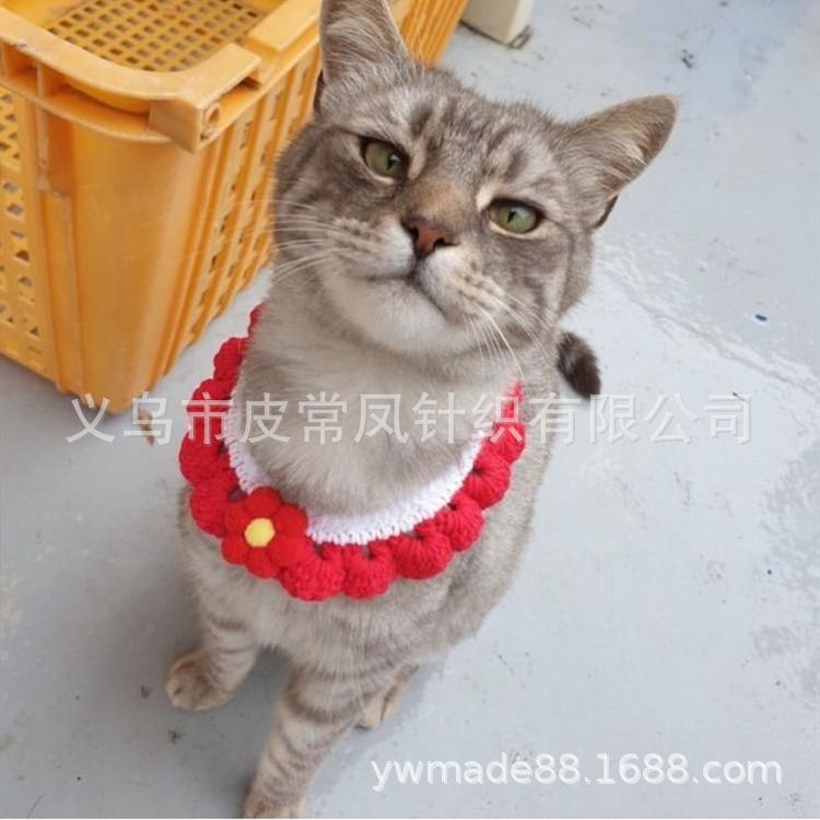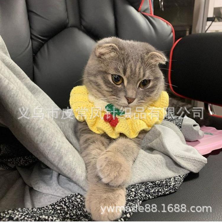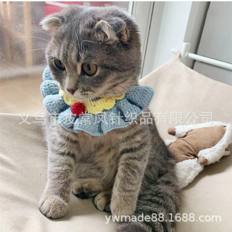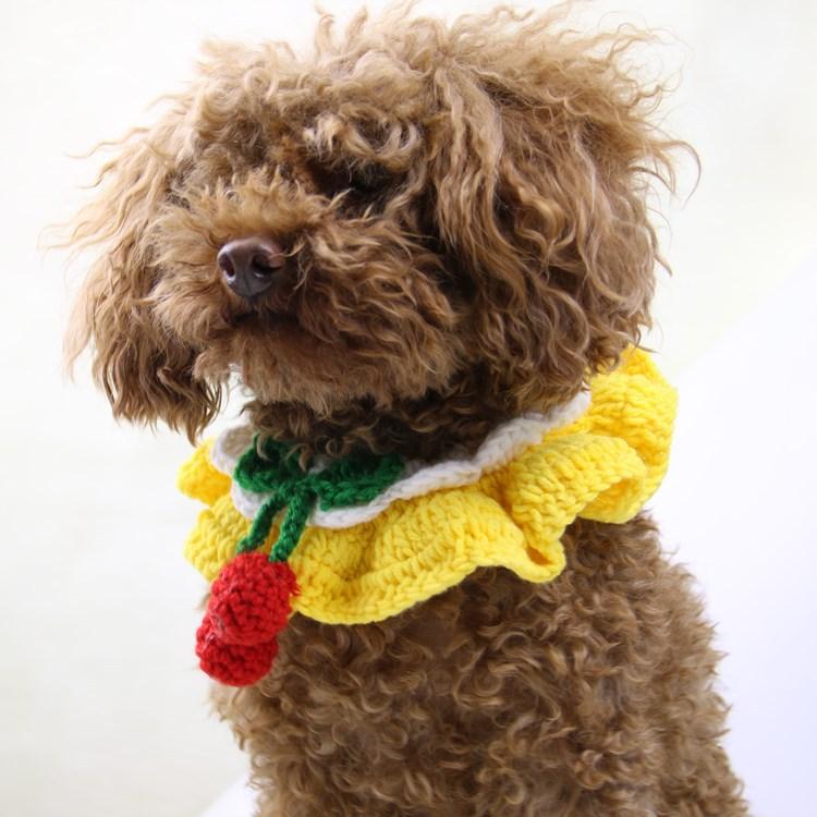 Collar Navideño para Mascota Gato Perro Pequeño Cereza Lana Encaje Tejido Bufanda de Saliva Fabricante de Bufandas Gatito al Por Mayor