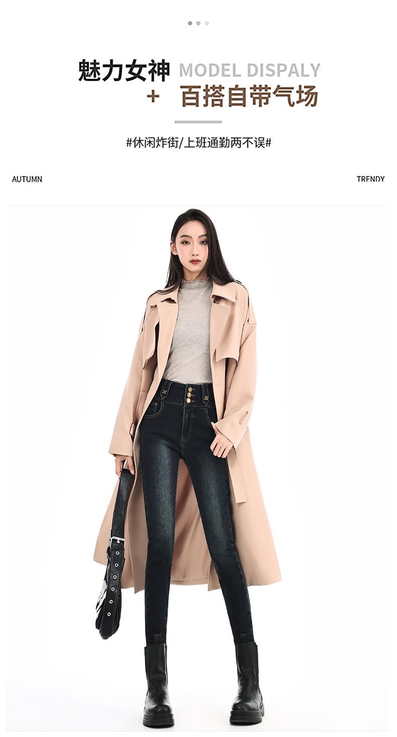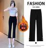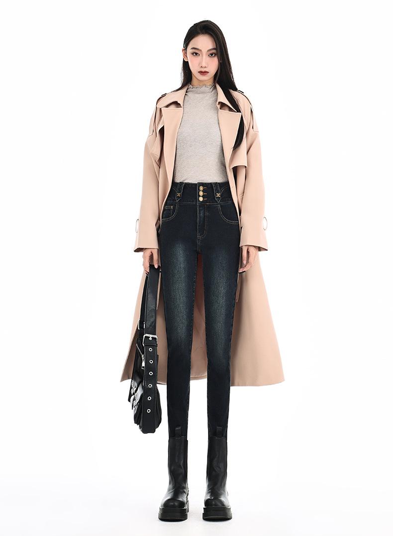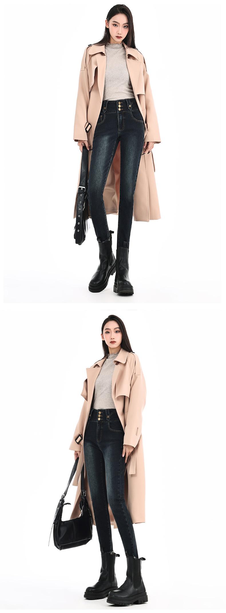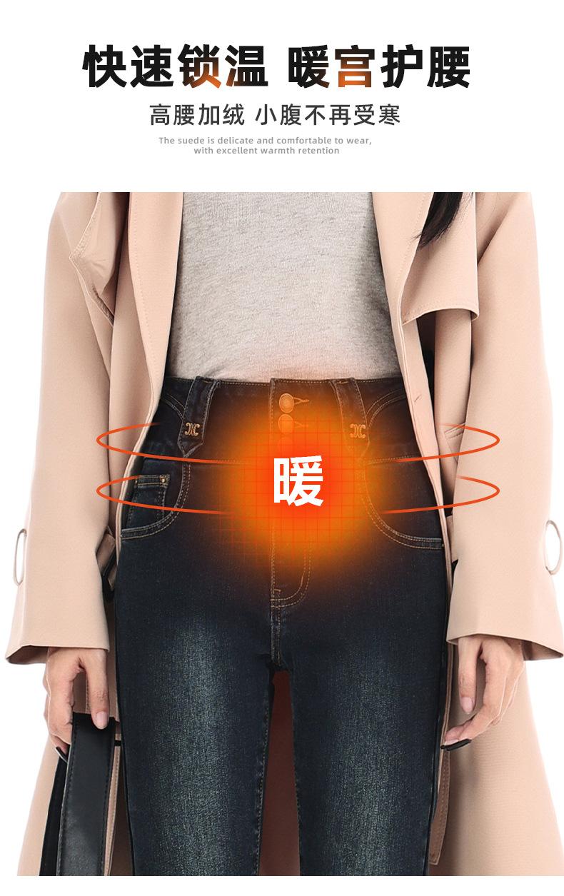 Jeans Azules de Pie Pequeño para Mujer en Otoño e Invierno 2025 Nuevo Look Adelgazante de Cintura Alta Versátil Ajustados de Tres Botones Forrados de Felpa Pantalones Lápiz
