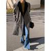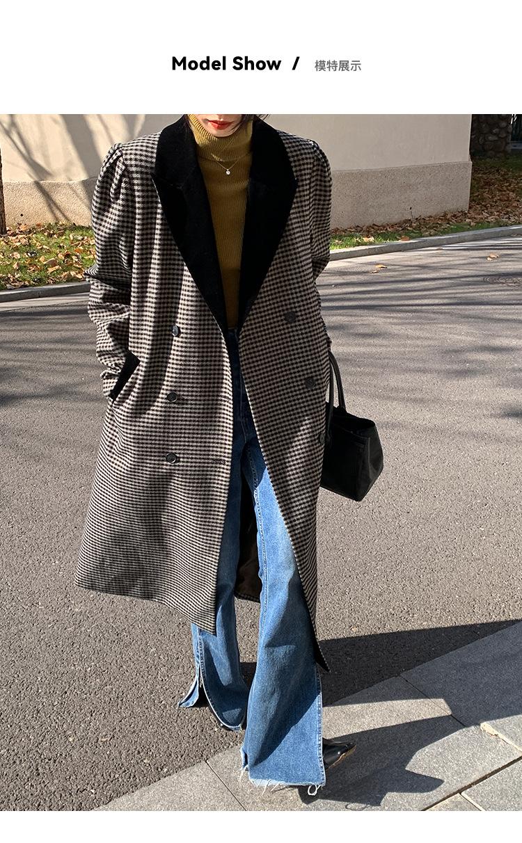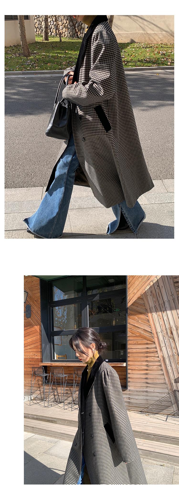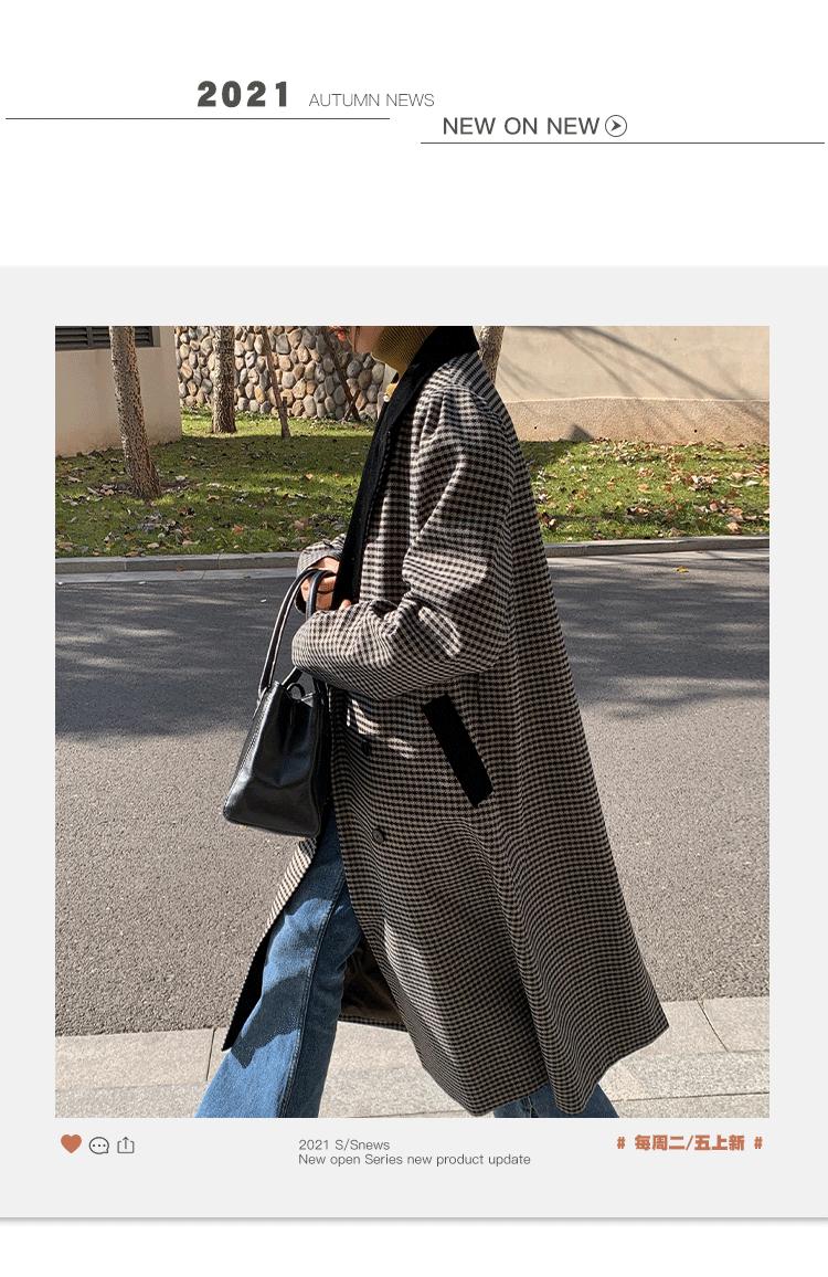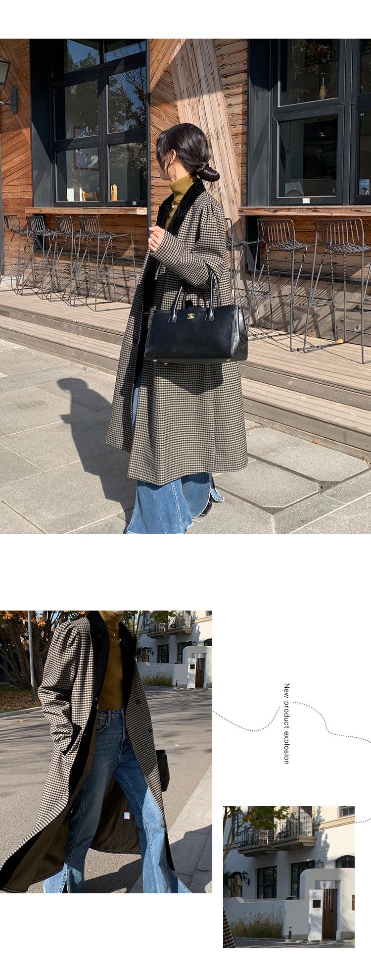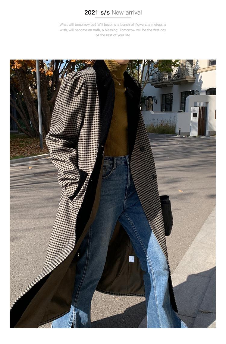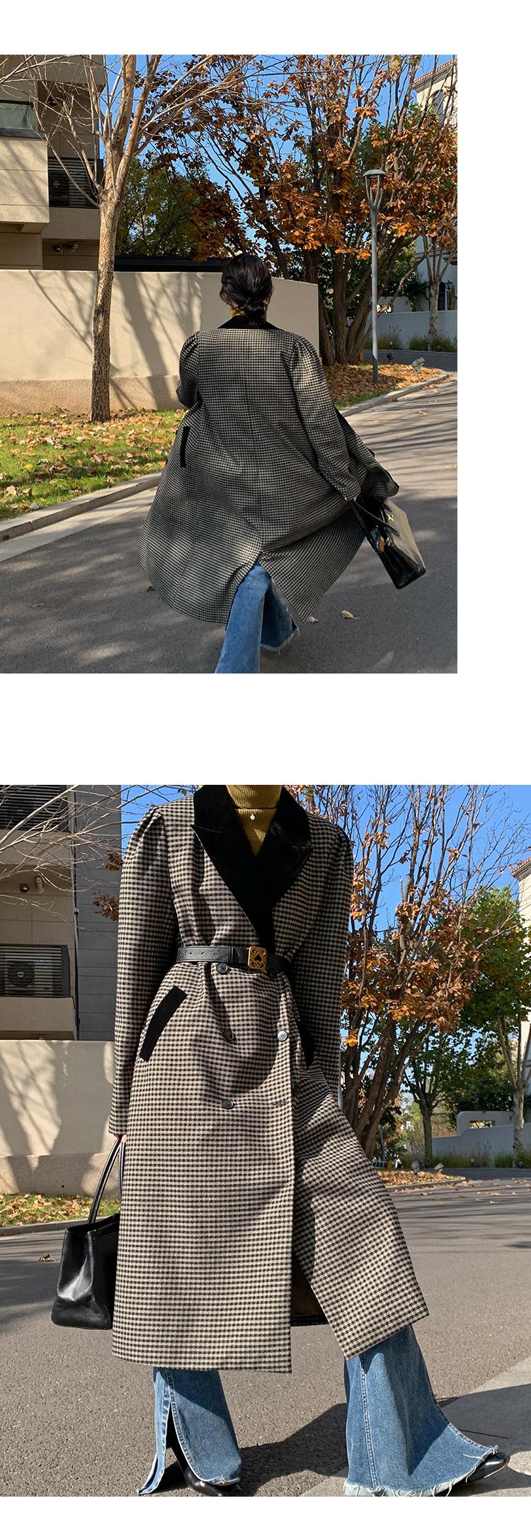 Nuevo Abrigo Cortavientos Largo de Invierno y Otoño Estilo Coreano con Cinturón Estampado de Pata de Gallo Ropa Exterior para Mujer 93999 Moderno y Versátil