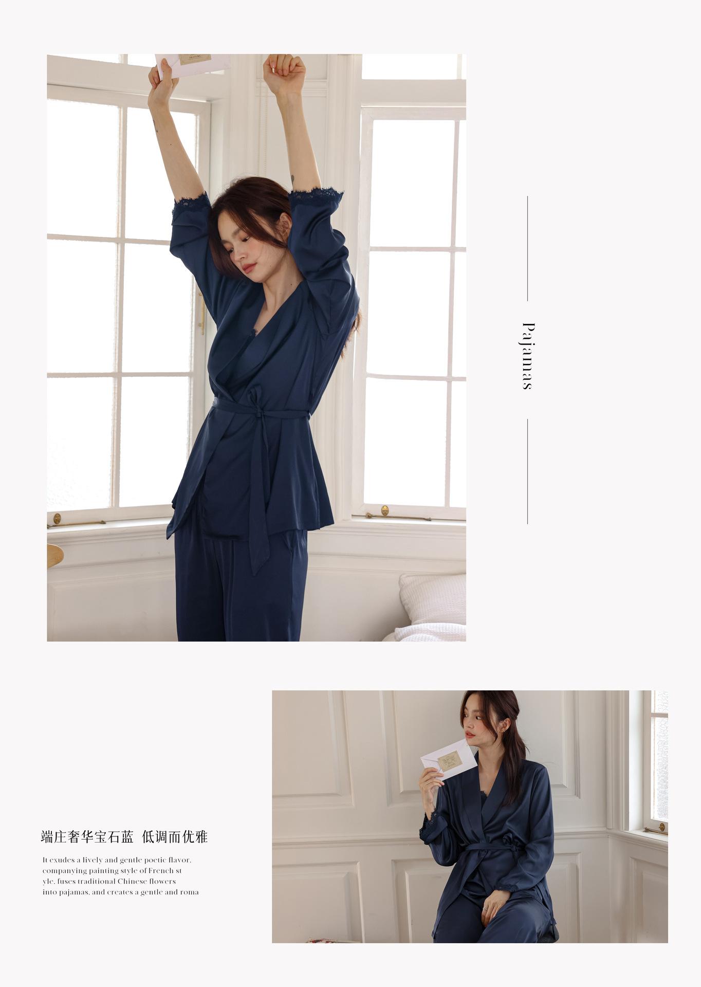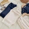 Pijama Nuevo para Mujer Primavera y Verano Camisón de Tirantes de Seda de Hielo Set de Tres Piezas Dulce y Elegante Casual Sexy Set para Estar en Casa