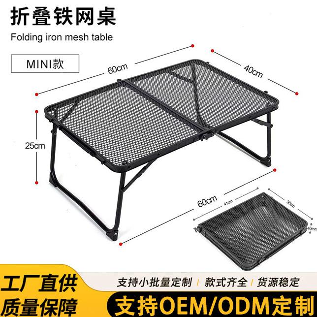 Mini mesa de malla plegable 60*40, multifuncional, de malla de hierro, ligera, portátil, para picnic, camping, barbacoa, venta al por mayor