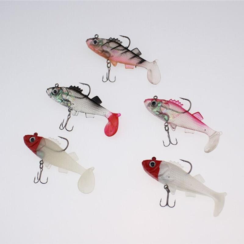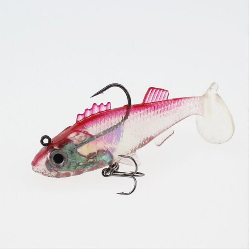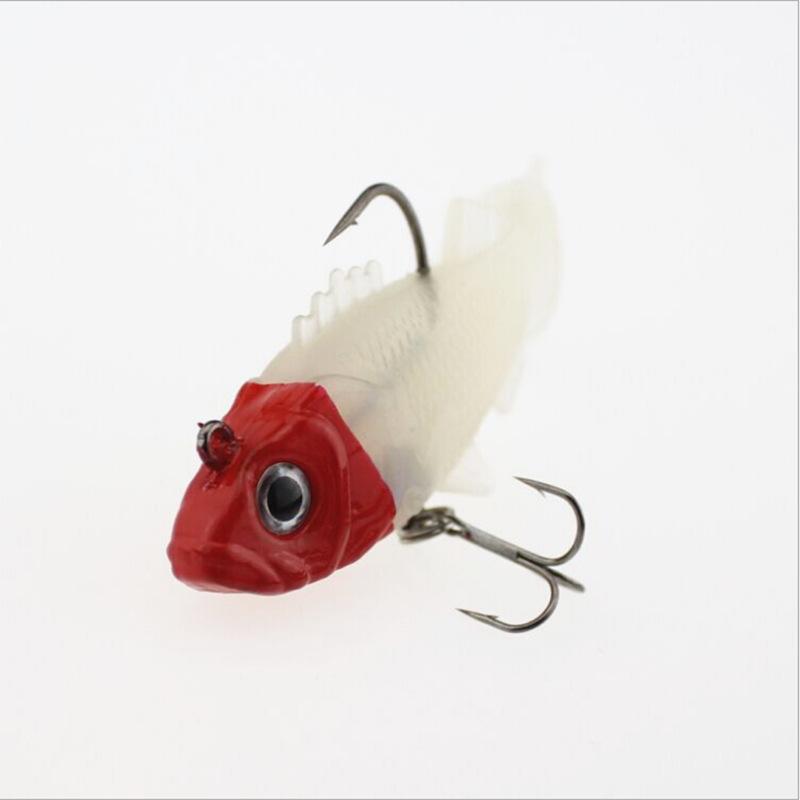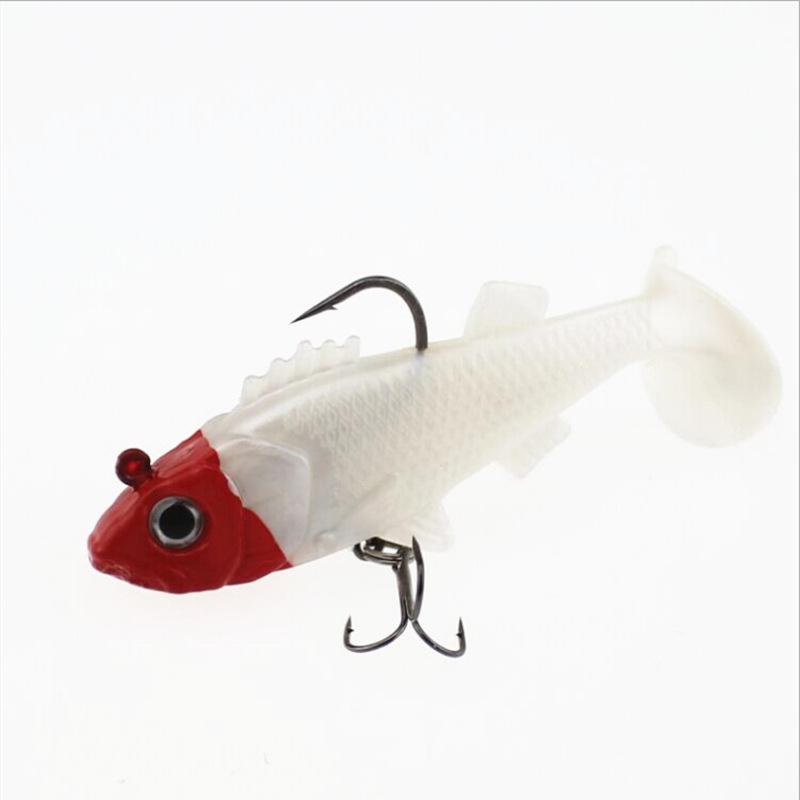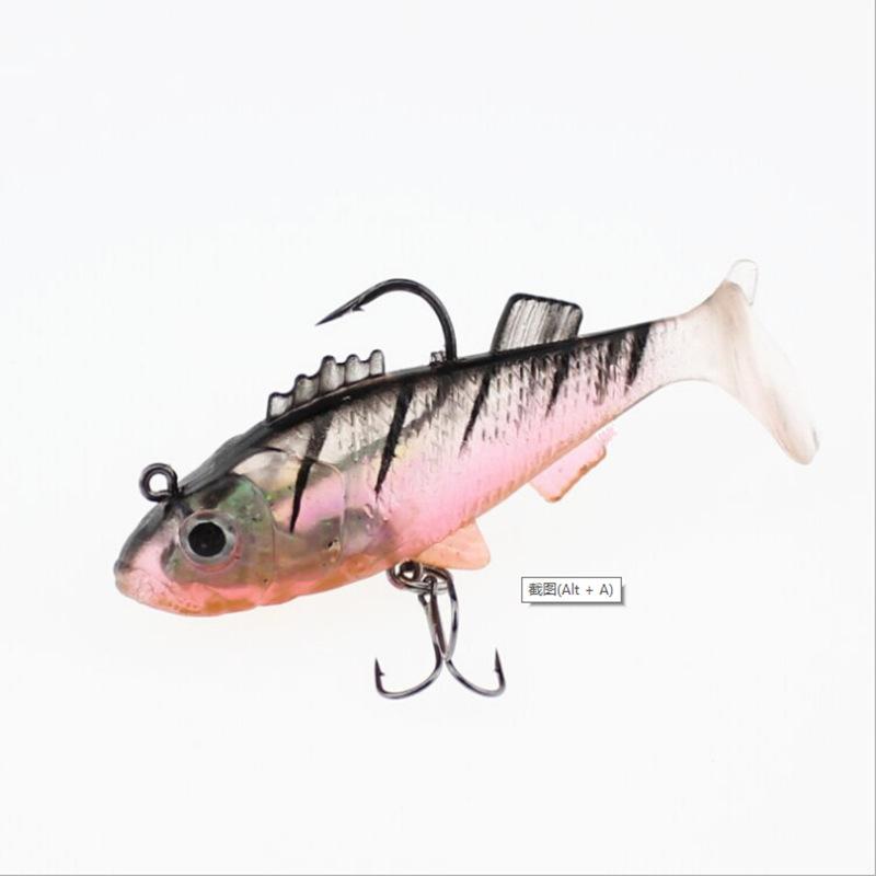 Equipado con tres anzuelos y uno simple, la forma del pez es realista, la simulación es buena, el cuerpo del pez es suave y la curvatura de la cola es hermosa. El cebo blando para peces envuelto en plomo es un cebo muy popular actualmente debido a su bajo costo y a que el cuerpo del pez es relativamente suave al morder el anzuelo. Tras un ataque fallido, el pez no notará nada inusual y continuará atacando, aumentando la probabilidad de anzuelo.