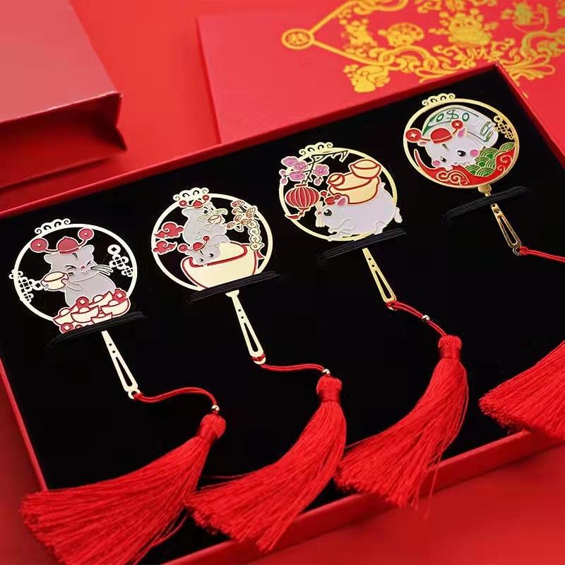 Separador de libros de metal al por mayor estilo artístico set de caja de regalo Guofeng Wenchuang Biblioteca calidad lámina metálica proveedor de fábrica