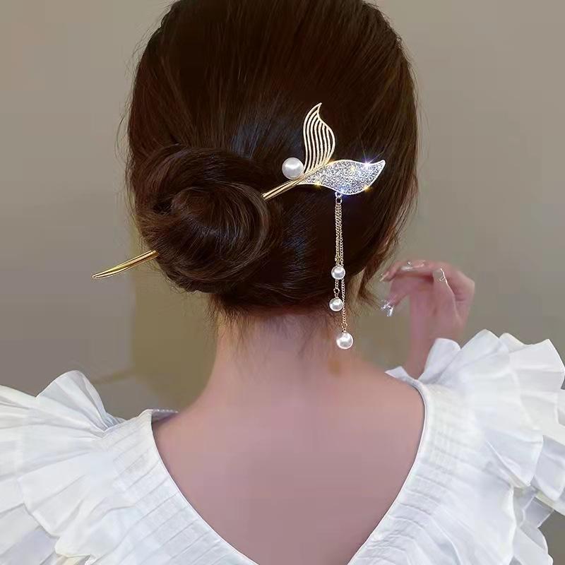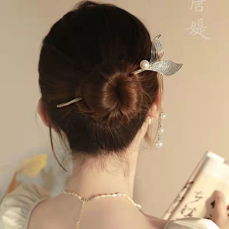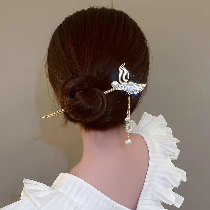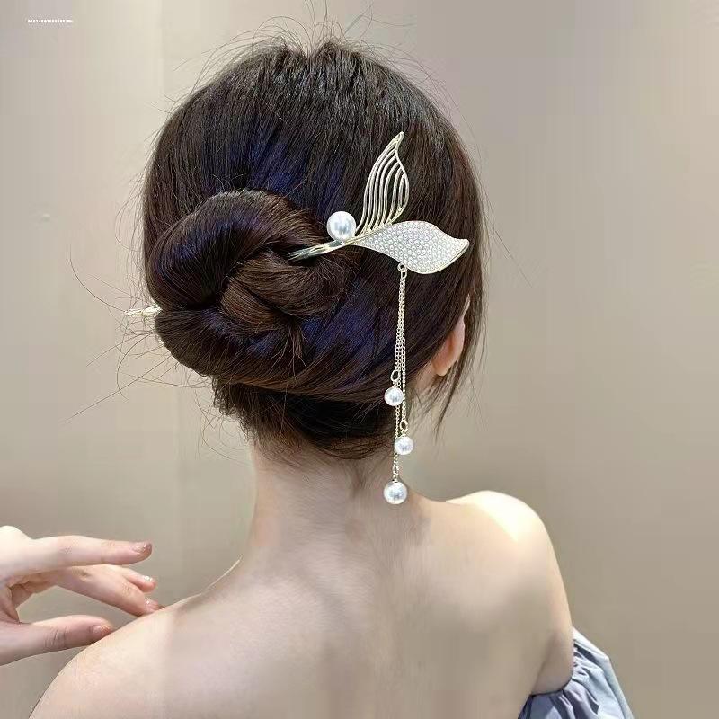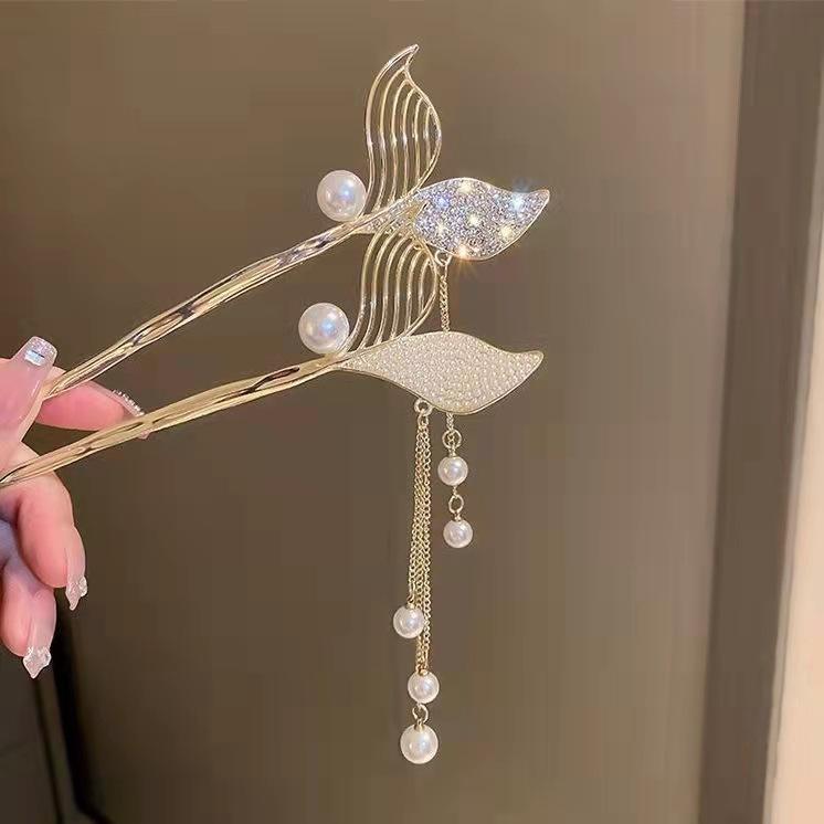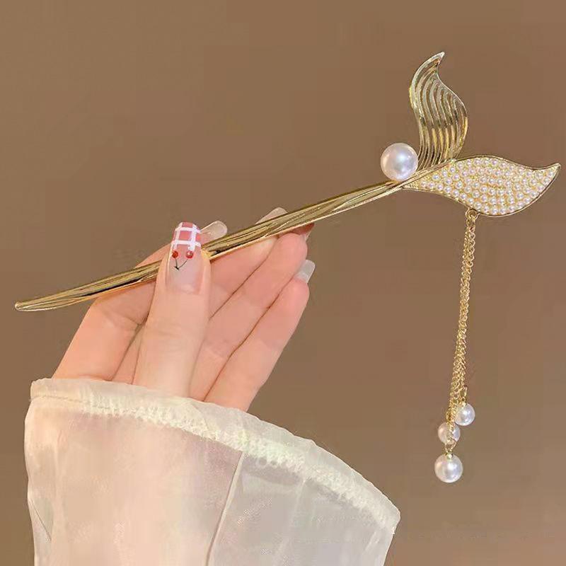 Horquilla con borla de cola de pez de alta sensibilidad con sonido de explosiones para mujer, nueva horquilla antigua, accesorios para el cabello al por mayor