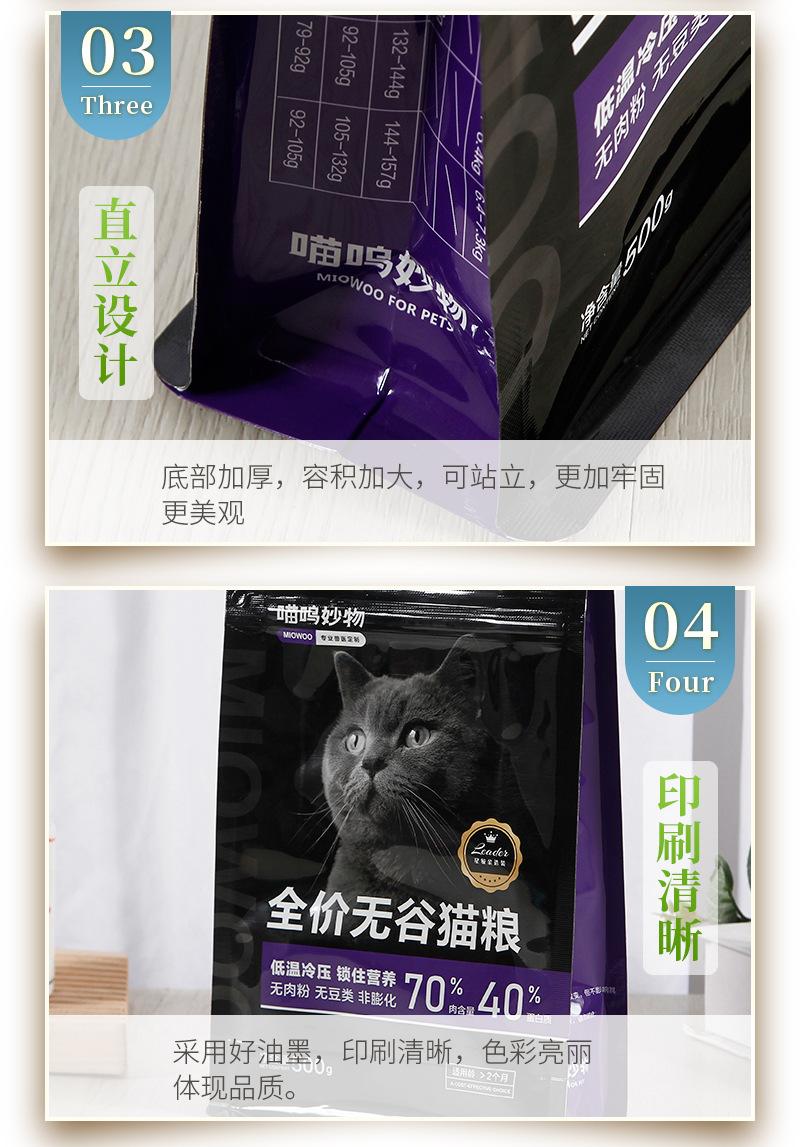 Suministro directo de fábrica bolsa de embalaje para alimento para gatos y perros sellada por ocho lados bolsa de plástico para alimentos fácil de rasgar cremallera bolsa de embalaje compuesta aluminizada