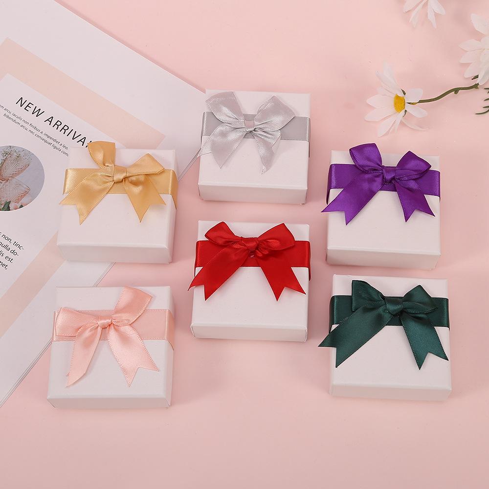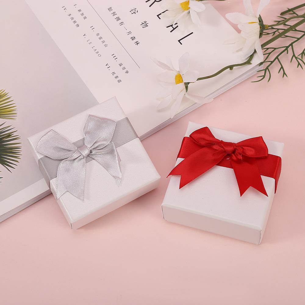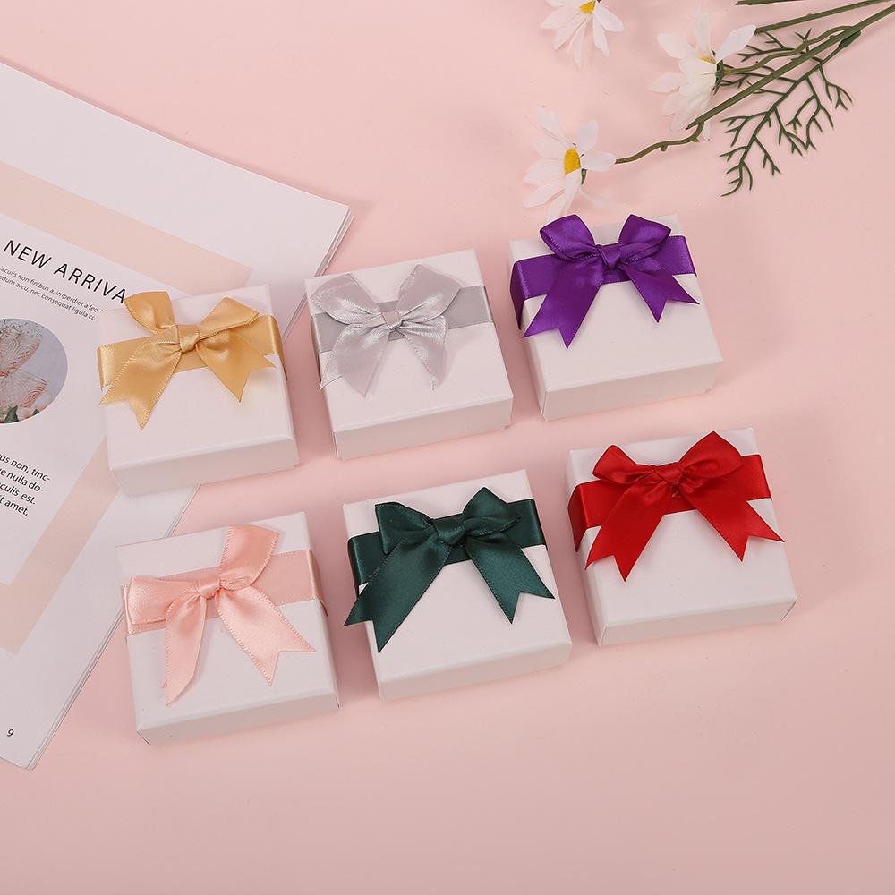 Nueva caja de joyería de lazo, anillo, pendientes, colgante, collar, pulsera, almacenamiento de cartón, embalaje, caja de regalo, caja de joyería