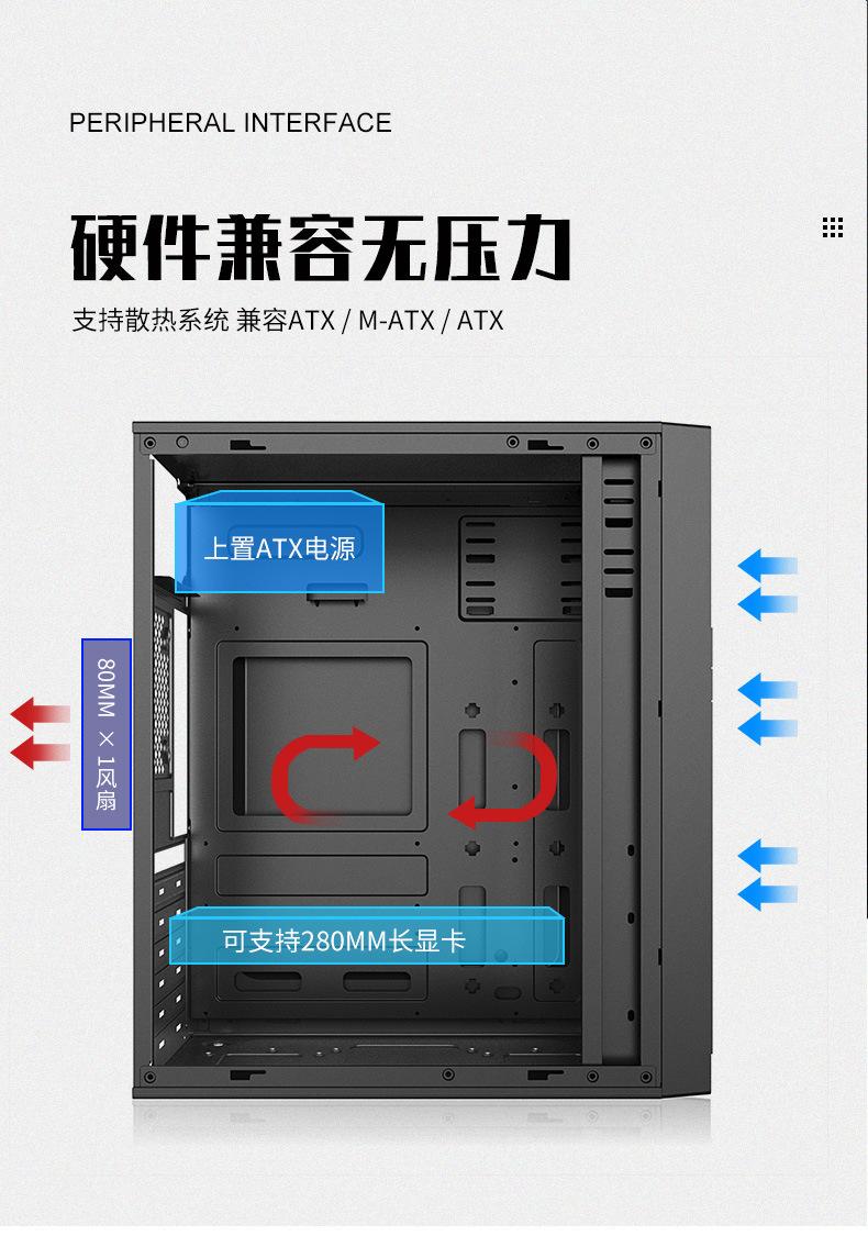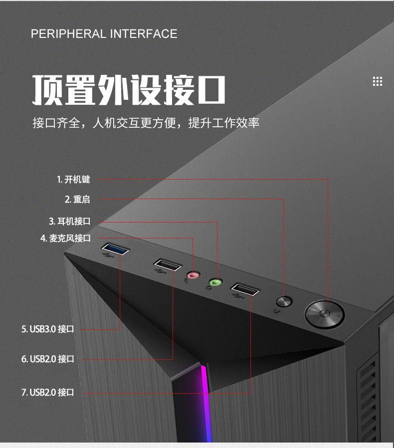 Chasis de computadora de escritorio para juegos, oficina, negocios, ATX, chasis pequeño, refrigerado por agua, barra de luz lateral, chasis para juegos de deportes electrónicos