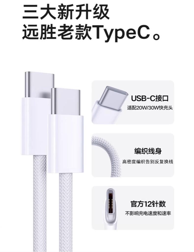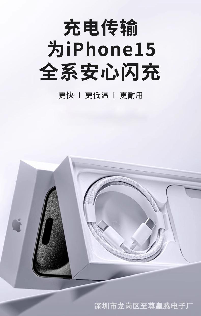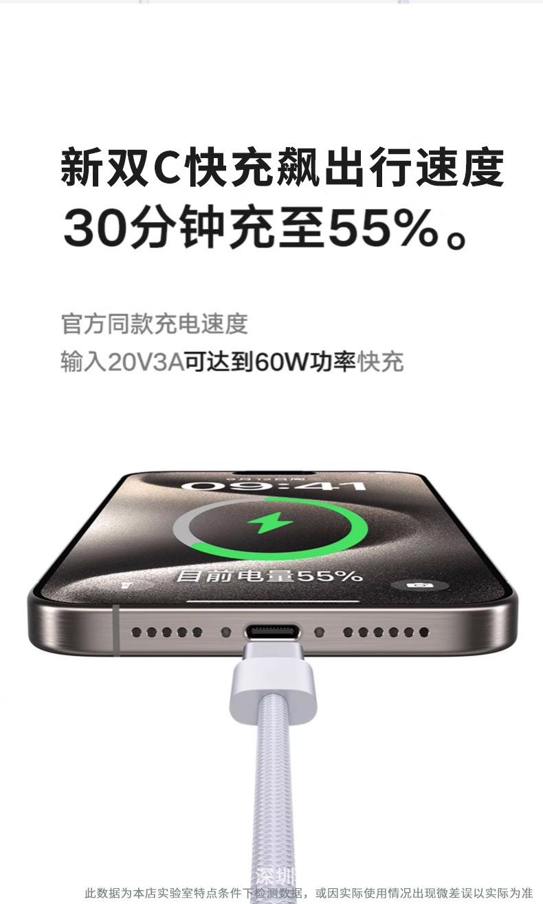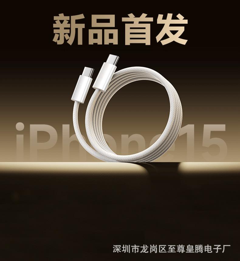 Adecuado para Cable de Datos Apple 15 Cable Trenzado Cable de Datos de Doble Extremo Tipo C Teléfono Móvil Cable de Carga Rápida PD Cable de Carga C-C