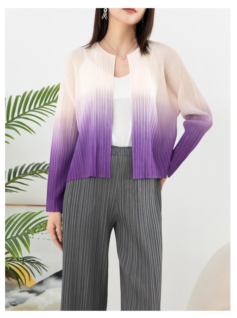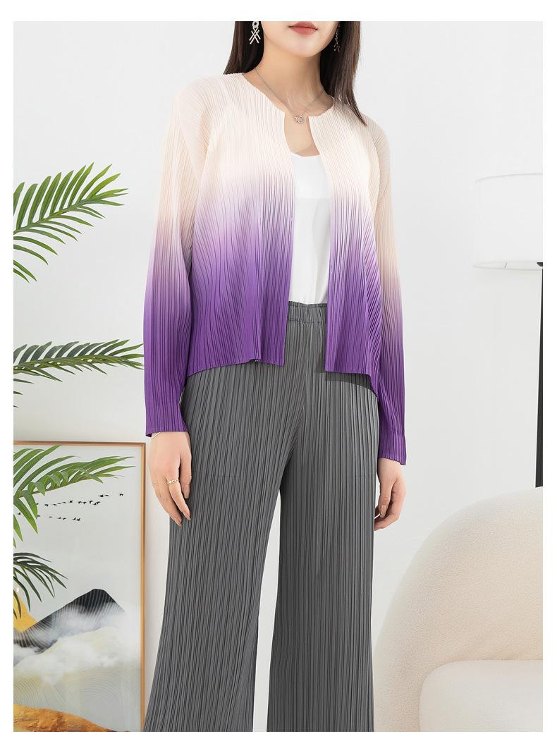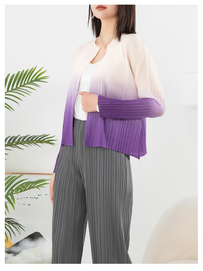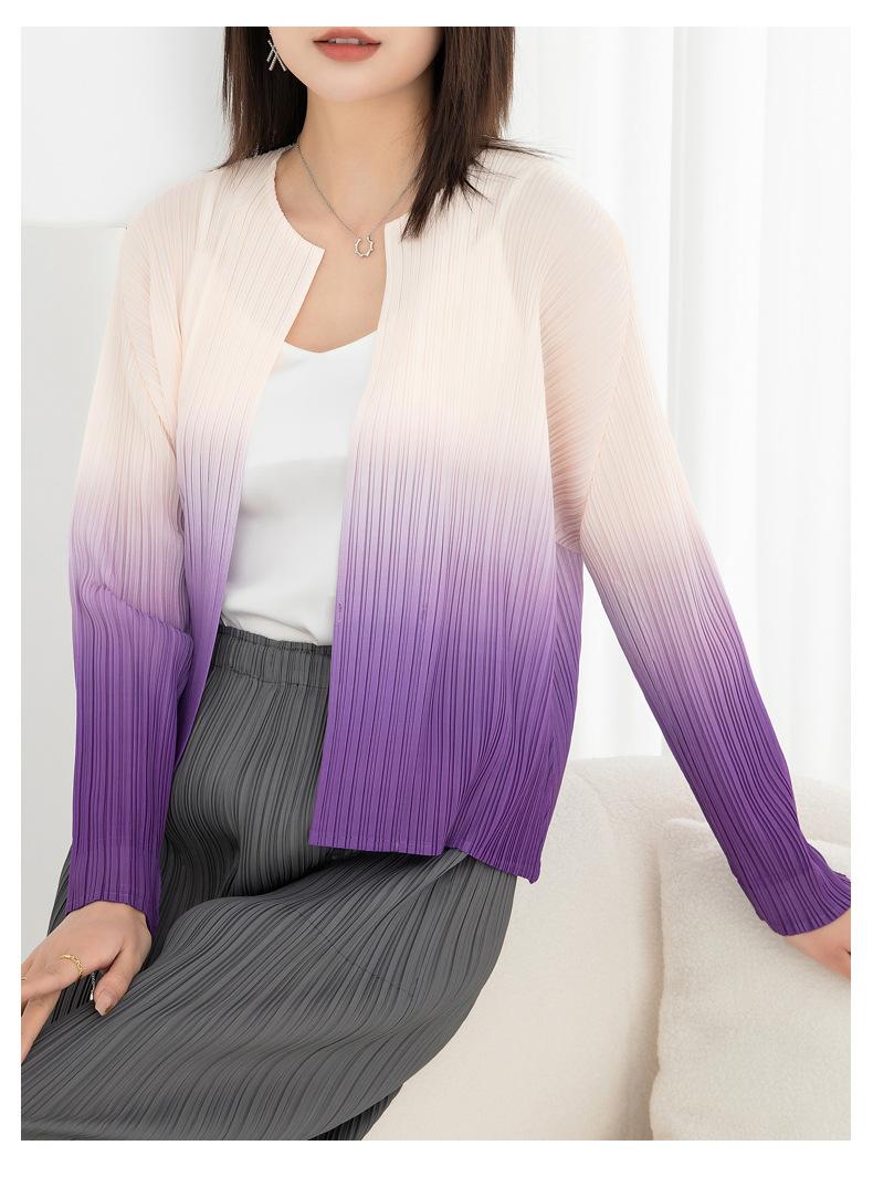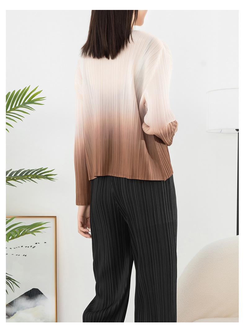 Abrigo plisado de estilo japonés para mujer Primavera y otoño Nuevo cárdigan degradado Casual de manga larga Moderno Elegante Versátil Top exterior
