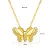 2. La mariposa mide 28 mm de ancho y 19,5 mm de alto incluyendo el orificio para colgar, está electrochapada en oro y tiene circonitas blancas.