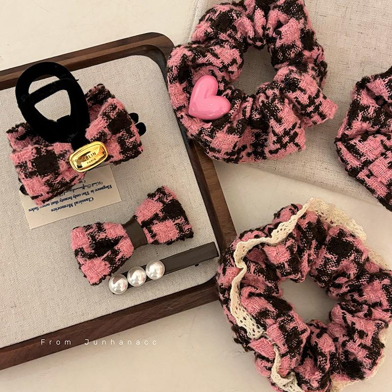 Pinza para el cabello de lazo de lana rosa, temperamento, liga para el cabello, anillo para el cabello, pinza lateral para cabello suelto, clip para flequillo, goma tendón, pinza para la cabeza
