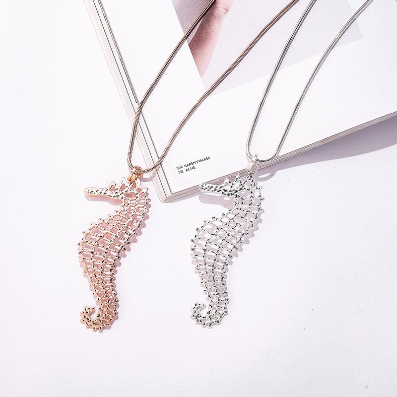Joyería transfronteriza Explosiones de Amazon Collar europeo y americano Cadena de hueso de serpiente de aleación en forma de caballito de mar Cadena de suéter largo de moda para damas