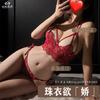 Compra Lencería de Encaje Ultradelgada para Bustos Grandes, Sexy Conjunto Rojo de Tres Piezas Push-Up con Adornos de Perlas y Bragas al por mayor en Joom.pro