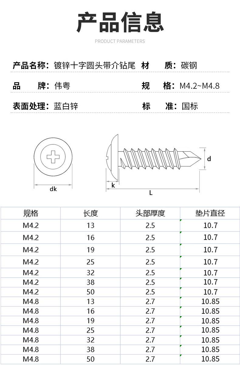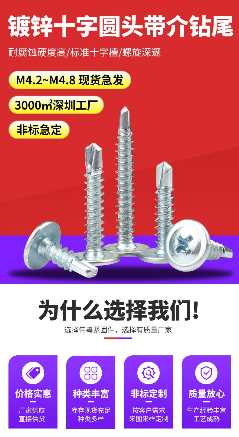 Compra Tornillo de cabeza redonda grande galvanizado con punta de cruz y broca autorroscante PW Huashi, tornillo de cola de milano con cabeza plana y broca mediana M4.2 al por mayor en Joom.pro