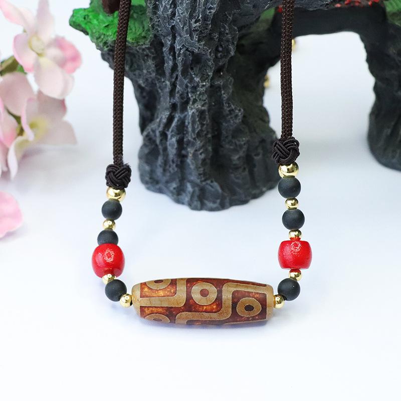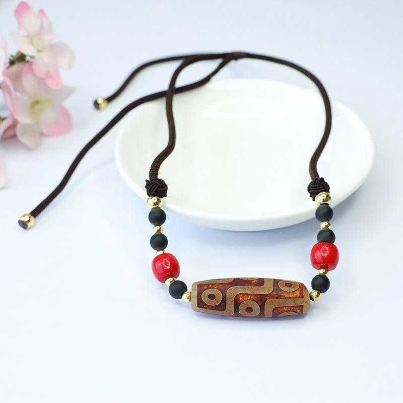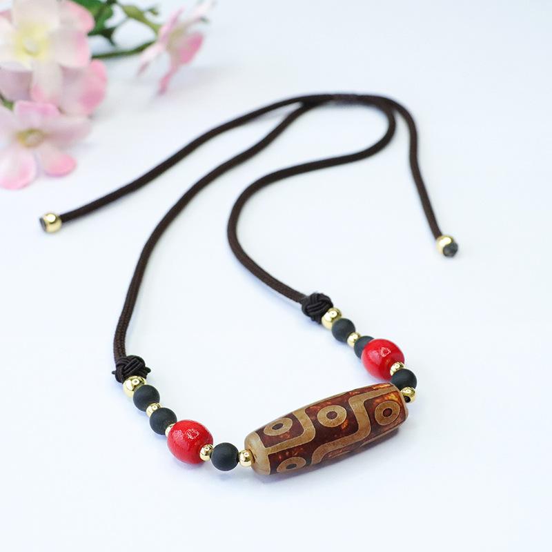 Collar de ágata con cuentas de nueve ojos Jiyu, cadena colgante, joyería de estilo nacional tibetano, venta al por mayor de fábrica, generación TZ3101704