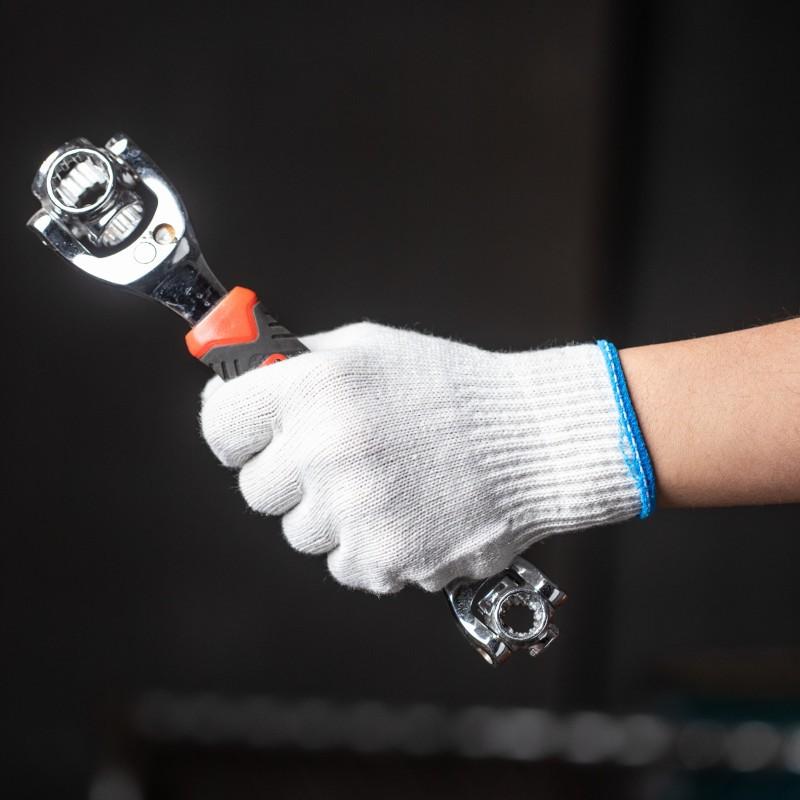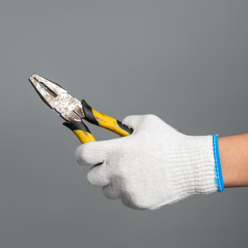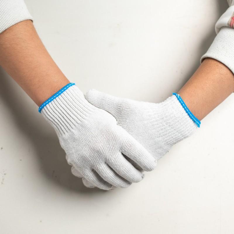 Guantes de protección laboral, hilo de algodón, algodón, nailon, hilo protector, guantes antideslizantes, tejidos gruesos, resistentes al desgaste, guantes de trabajo blancos al por mayor