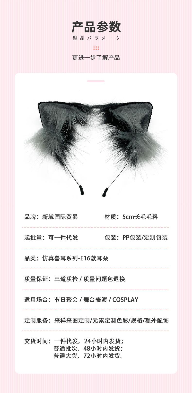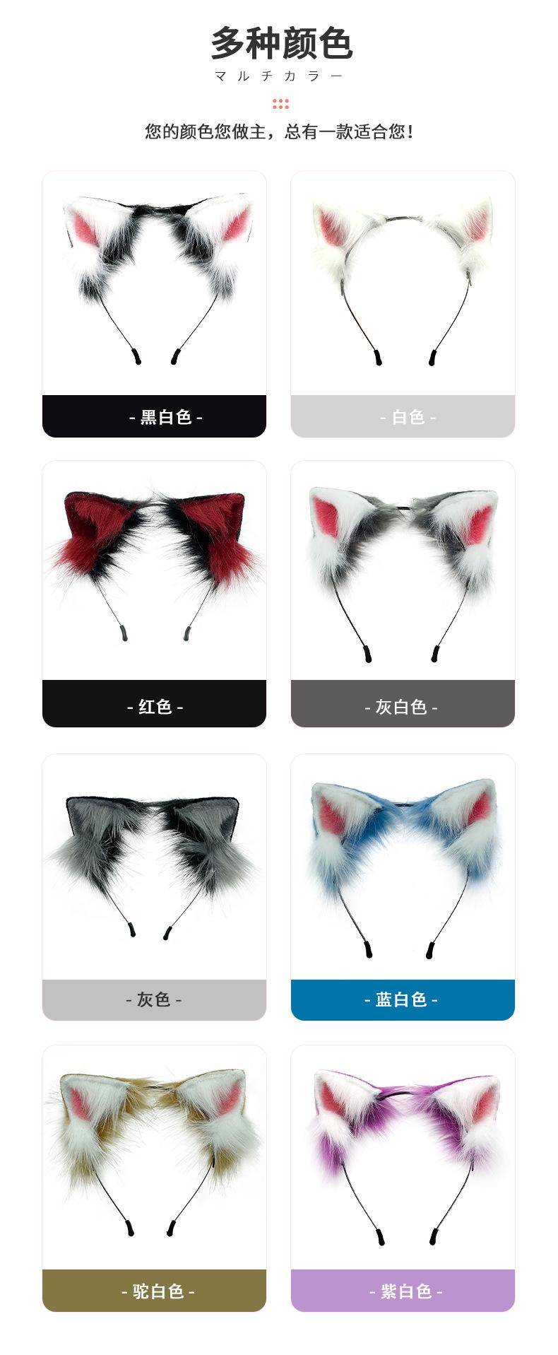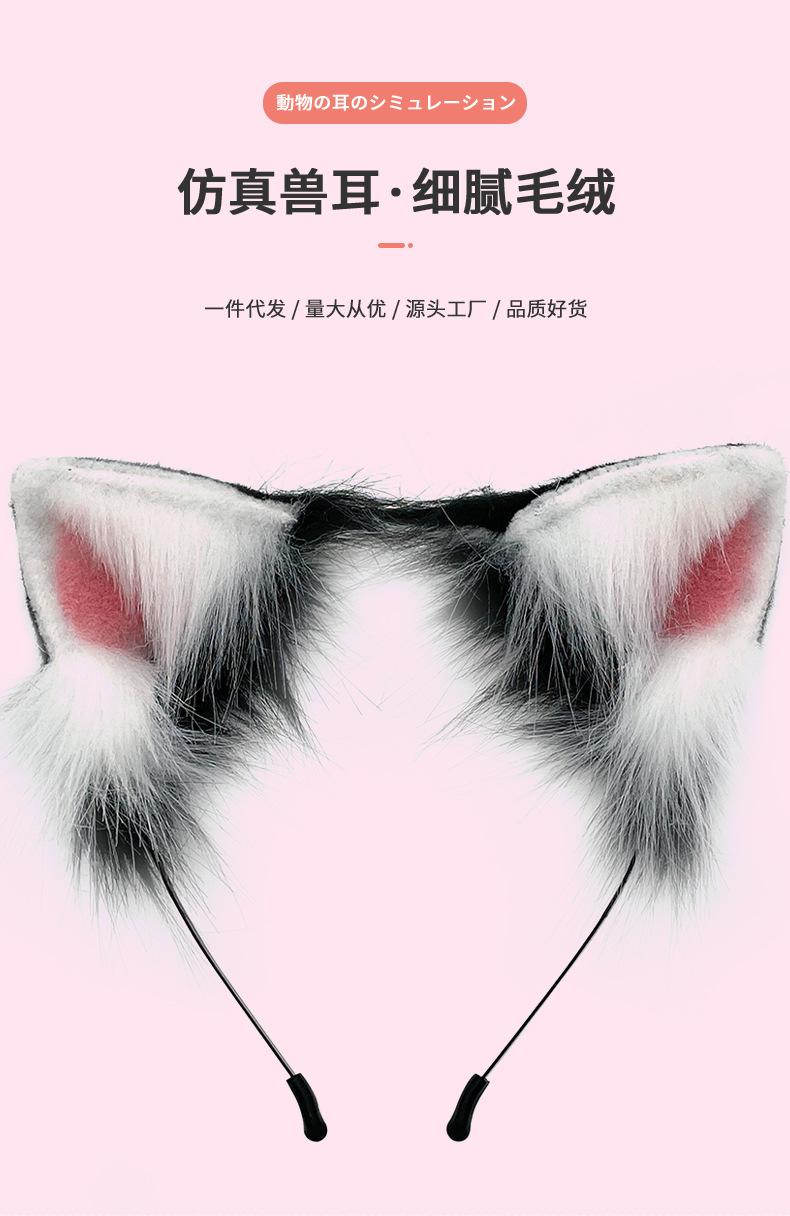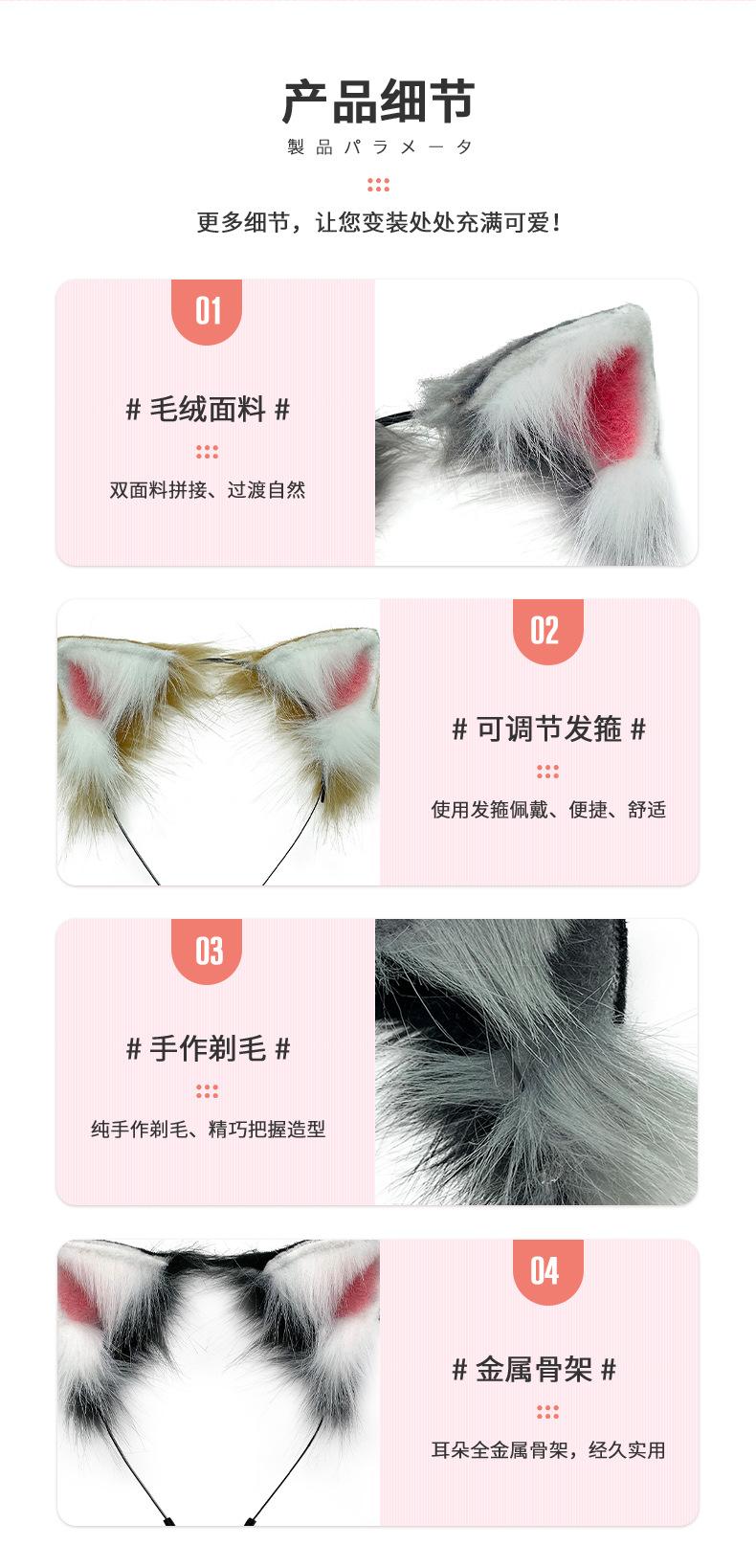 Diadema con orejas de gato simuladas hechas a mano, accesorios de cola de zorro, conjunto de orejas y cola de animal bidimensional, collar y horquilla al por mayor