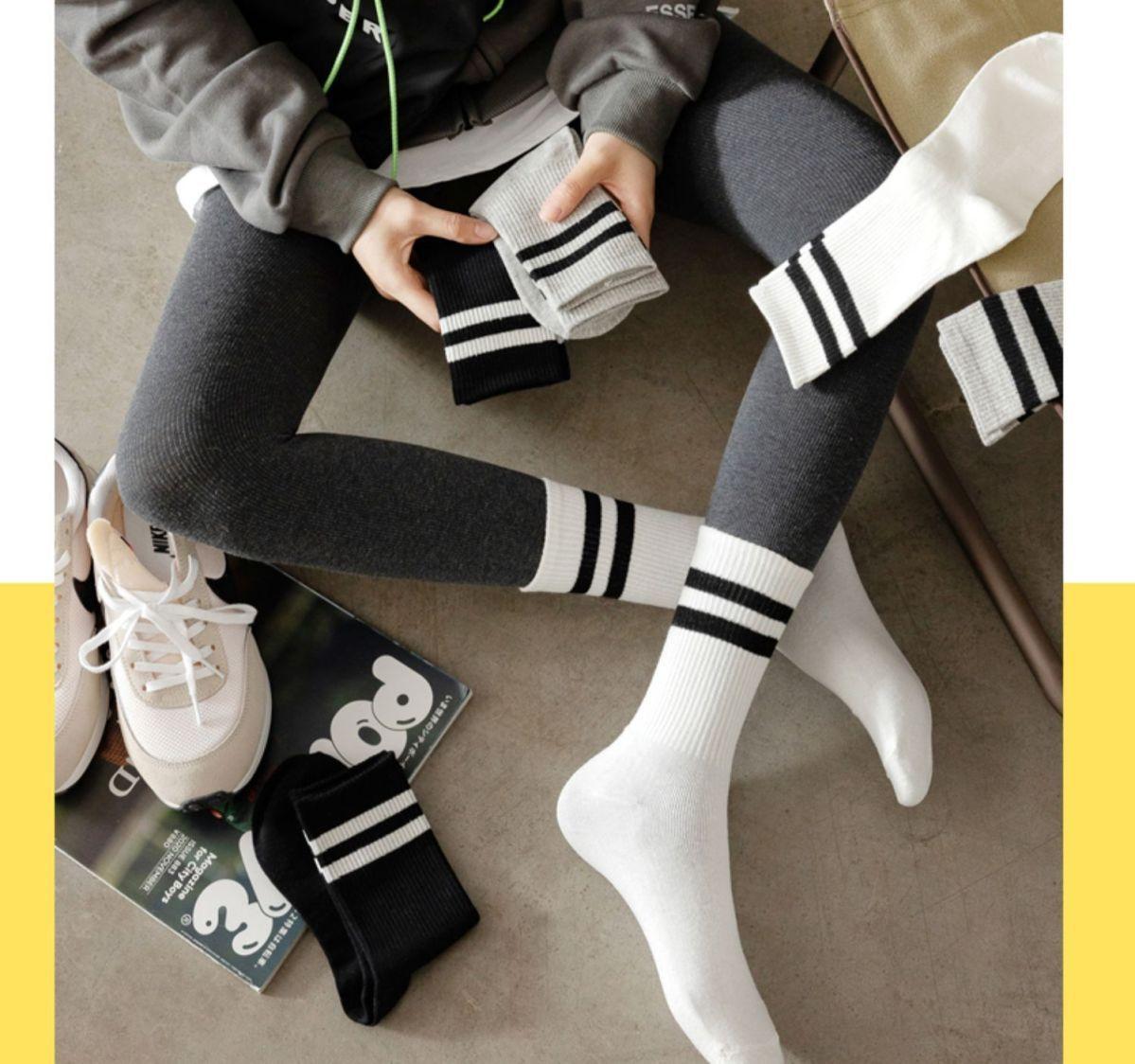 Calcetines nuevos de otoño e invierno para mujer, calcetines japoneses de algodón de dos barras, calcetines de tubo medio, calcetines deportivos de estilo académico para mujer, venta al por mayor
