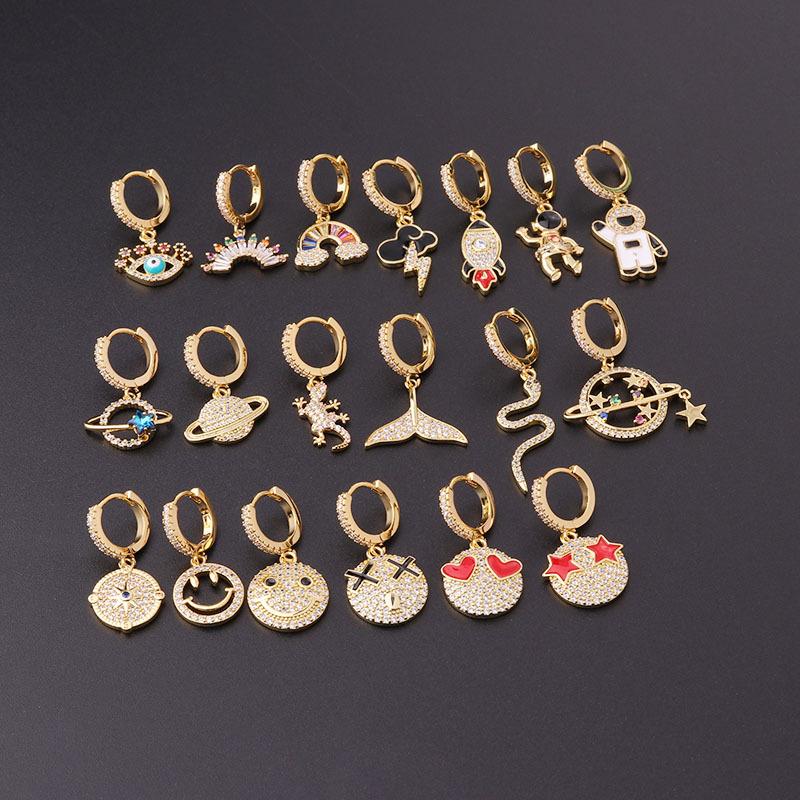 nombre del producto | Pendientes de nuevo estilo con microincrustaciones de circonitas de metal, hebillas colgantes con forma de cielo estrellado, paquete de expresión, joyería chapada en oro, pendientes de comercio exterior |