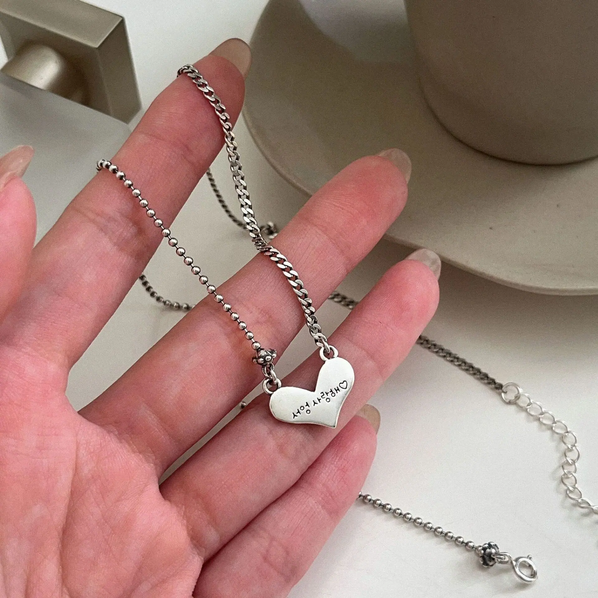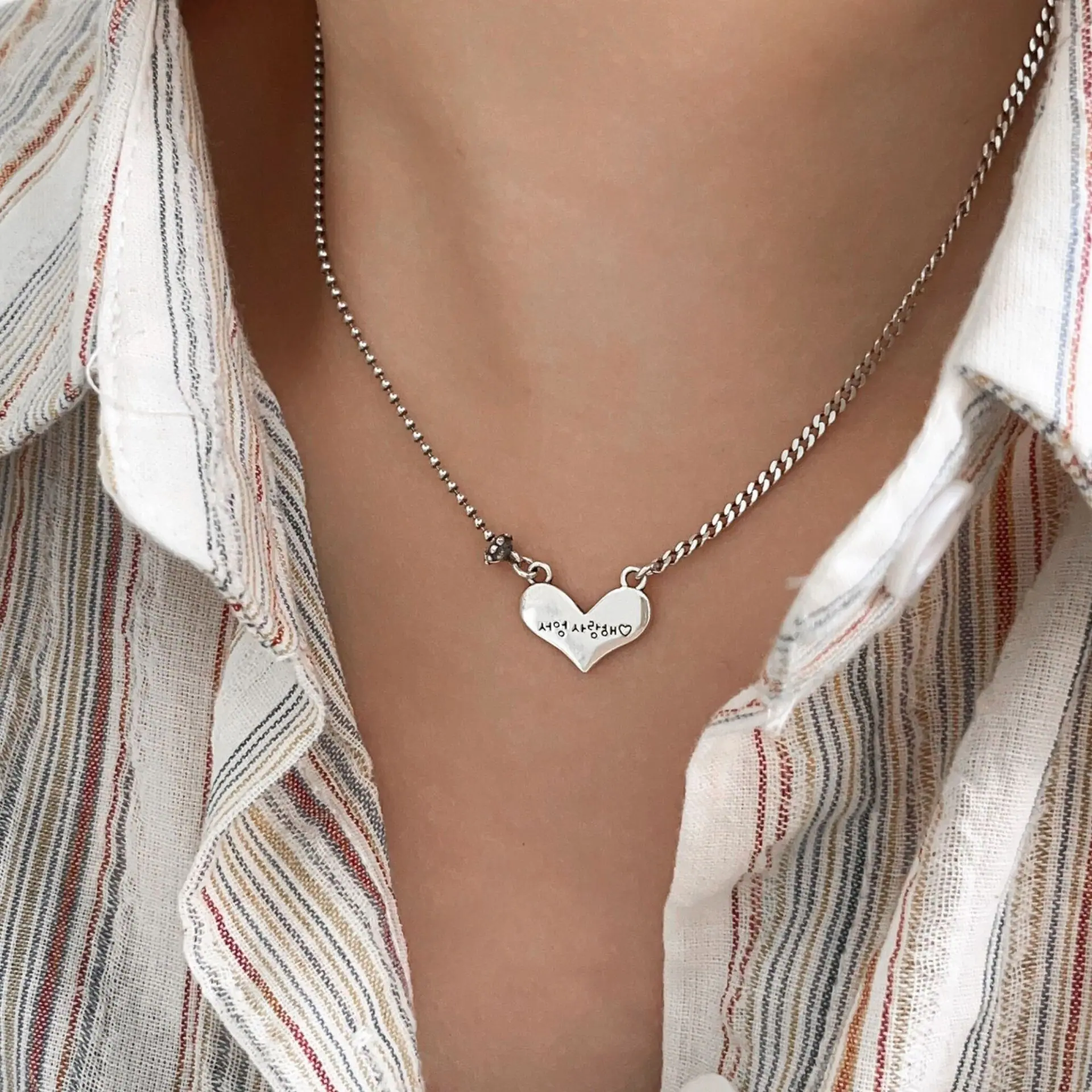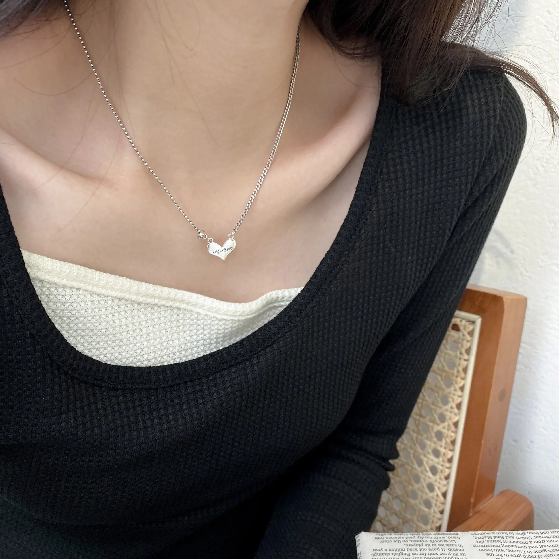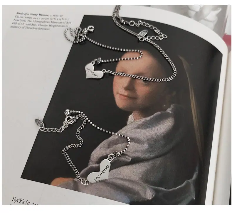 Compra Collar de amor de plata de ley 925 para mujer, estilo coreano, con cadena de clavícula sencilla en forma de corazón, elegante, estilo cibernético, pequeño y fresco. al por mayor en Joom.pro
