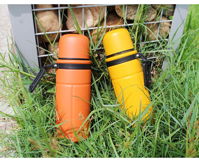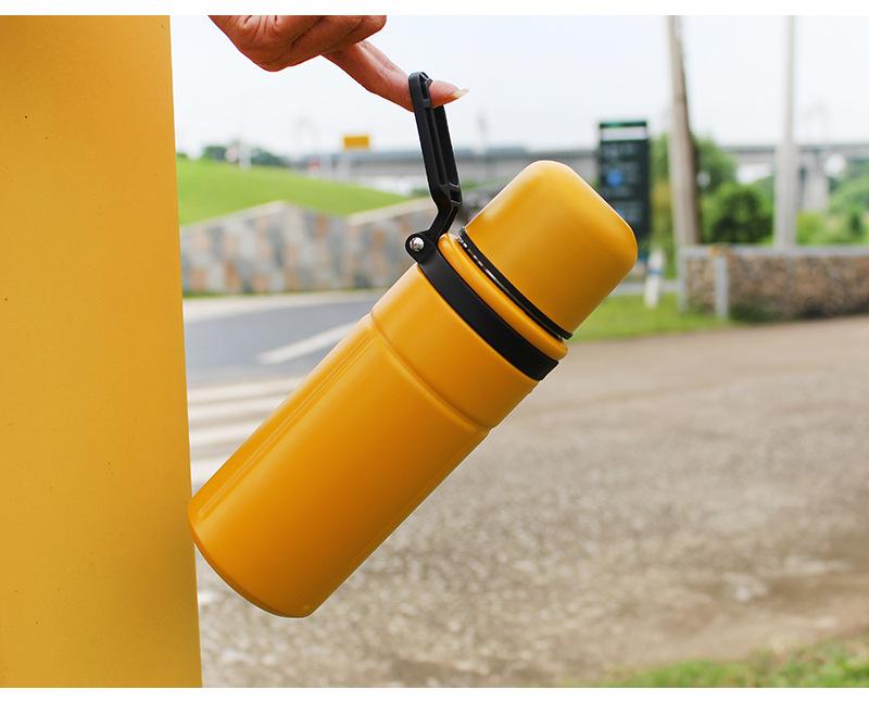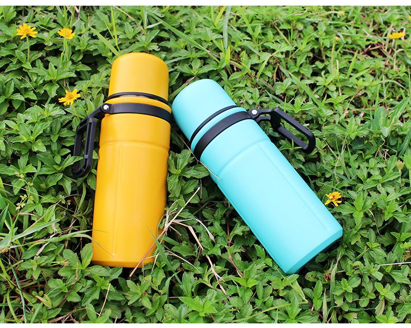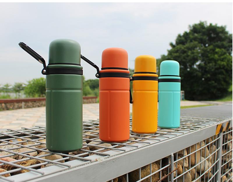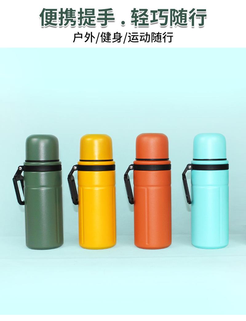 Taza de vacío de acero inoxidable 304 personalizada de fábrica para deportes al aire libre, conveniente con asa, aislamiento de agua a presión, taza, termo