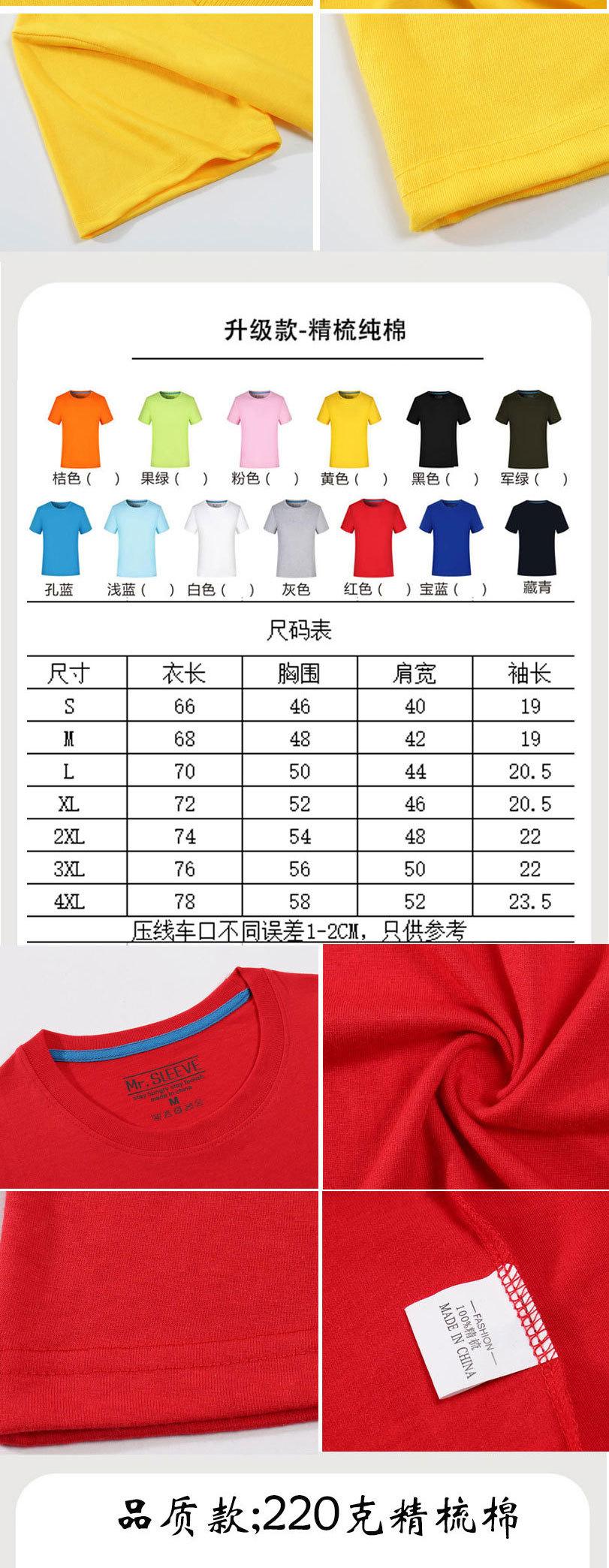 Camiseta de algodón peinado con logotipo personalizado, cuello redondo, camiseta publicitaria, camiseta de cultura corporativa, impresión de ropa de clase de trabajo, manga corta, venta al por mayor