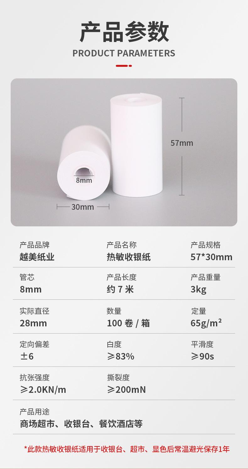 Papel de impresión térmica de 57 x 30, papel térmico de 58 mm, papel para caja registradora, impresora de recibos para llevar, rollo de papel pequeño sin núcleo de 57 x 30