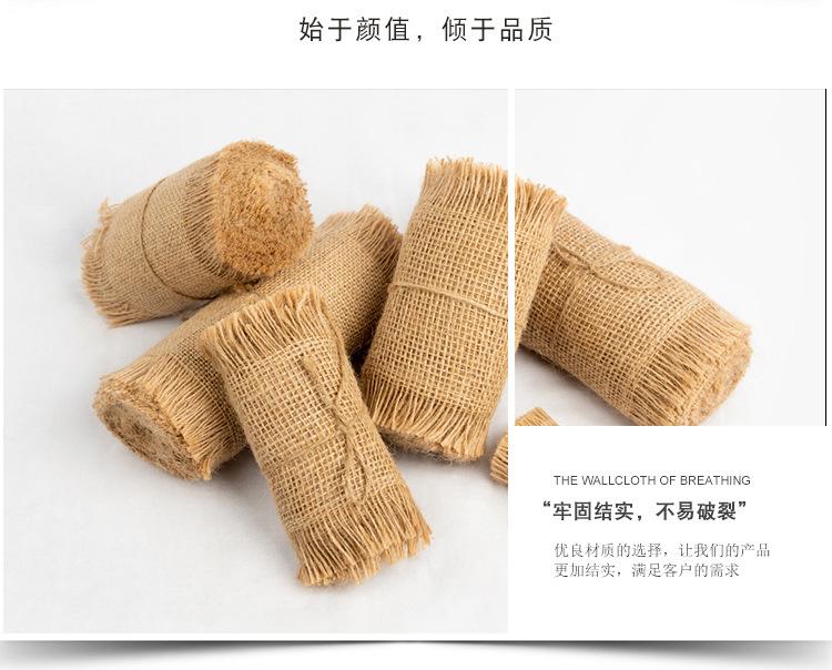 Camino de mesa de rollo de cáñamo estampado con borlas de colores, tela para respaldo de silla, rollo de yute, tela decorativa para fiesta de Navidad, encaje de lino DIY