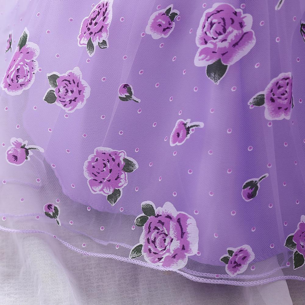 Nuevo vestido de princesa estampado con mangas voladoras pequeñas de Amazon para bebés y niños pequeños, vestido de niña de las flores para banquetes de boda de un año.