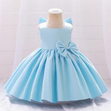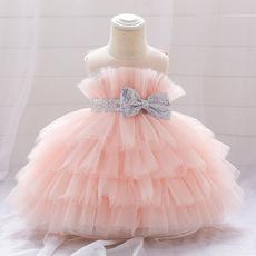 Vestido de bautizo con cola para bebés y niños pequeños, vestido de malla con lazo para banquete de primer cumpleaños de bebé, vestido de princesa plisado para niña de las flores de boda
