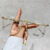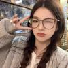 Gafas de miopía lisas, adelgazantes, con montura grande, antiluz azul, de color marrón frío, para mujer, con montura transparente ultraligera, gafas planas, montura TR