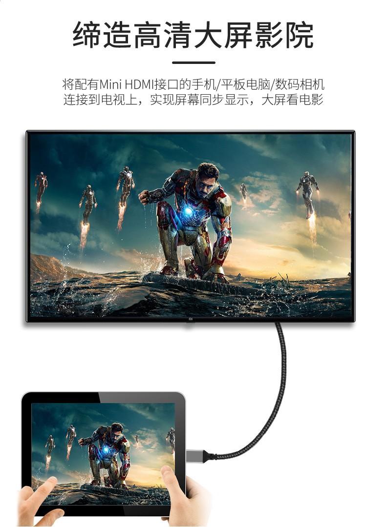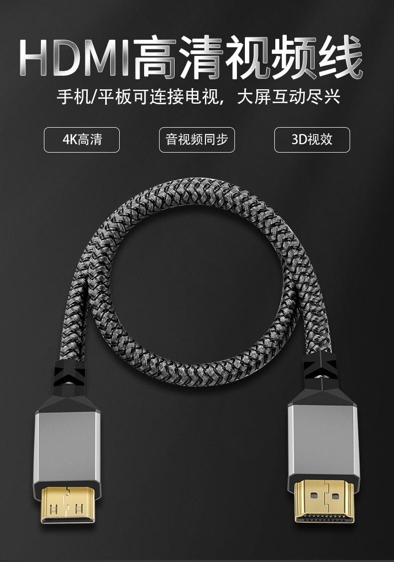 Compra Línea de conversión mini HDMI a HDMI HD 2.0 versión 4K, malla de aluminio gris, línea de conversión mini HDMI macho al por mayor en Joom.pro