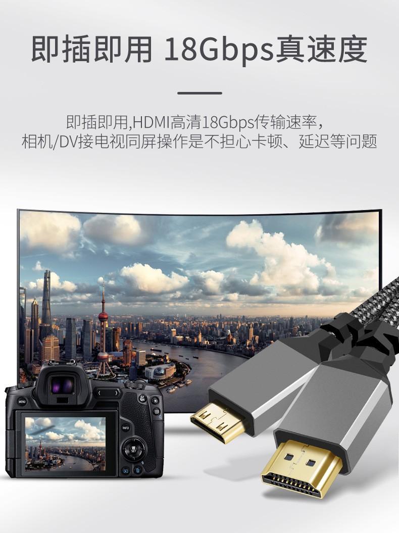Línea de conversión mini HDMI a HDMI HD 2.0 versión 4K, malla de aluminio gris, línea de conversión mini HDMI macho