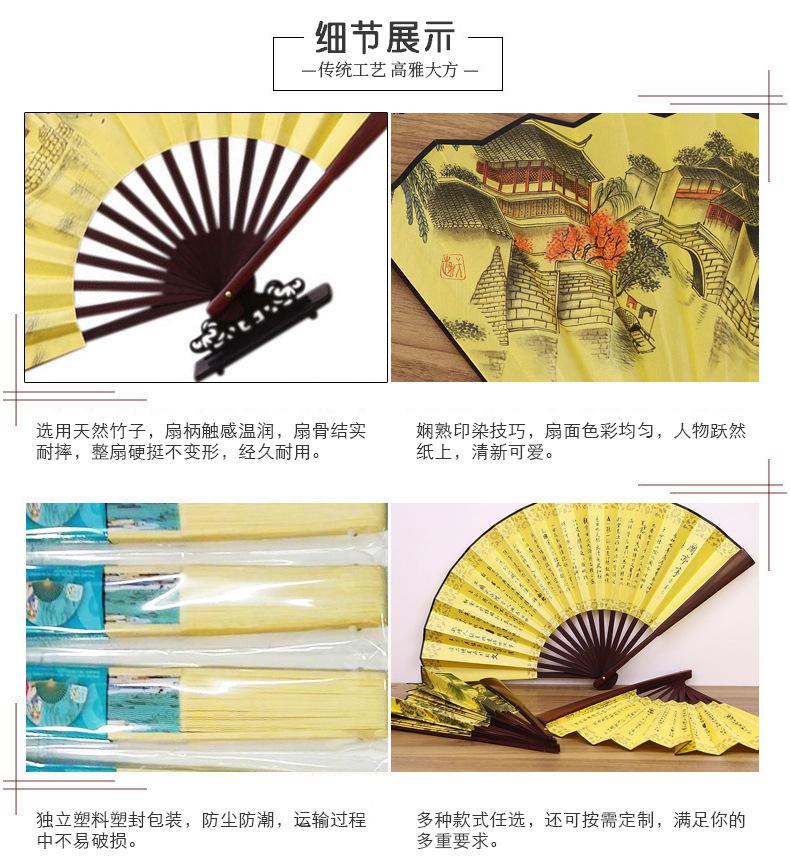 Abanico de seda artificial de palisandro de 10 pulgadas para hombre, abanico artesanal de bambú, dos abanicos verdes con impresión publicitaria, abanico plegable, fuente portátil, fabricante