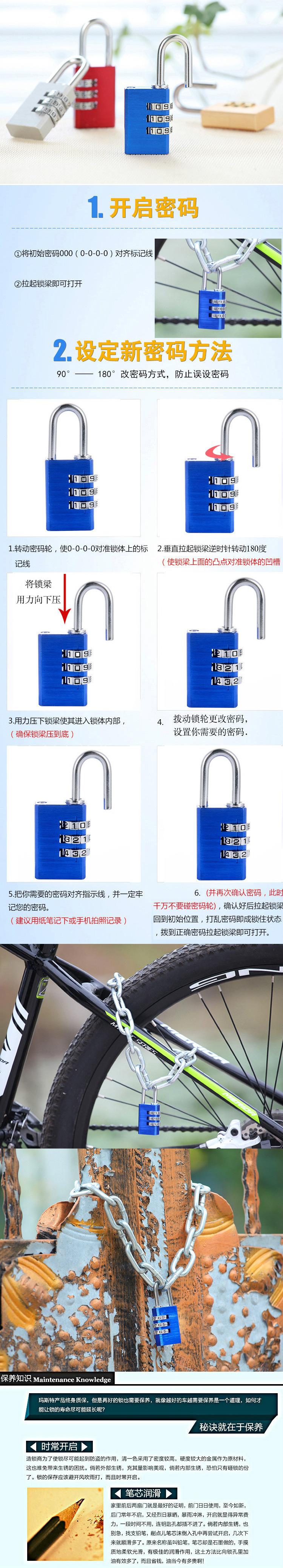 [Instrucciones] La contraseña de fábrica de esta cerradura es 0-0-0, que corresponde al estado abierto. Los pasos para cambiar su contraseña personal son los siguientes: (1).Después de abrir la cerradura, gire la viga de la cerradura.90Mantenga presionado, gire la rueda de caracteres para cambiar el número seleccionado, alinee el número con la línea indicadora y luego gire la viga de bloqueo.90Después de devolverlo a su posición normal, gire los números aleatoriamente para bloquear la contraseña.