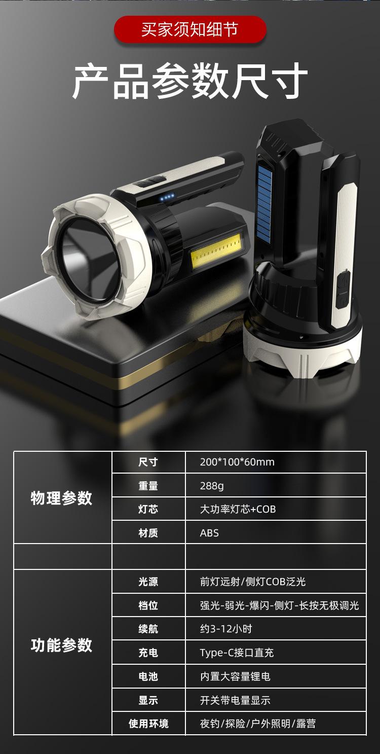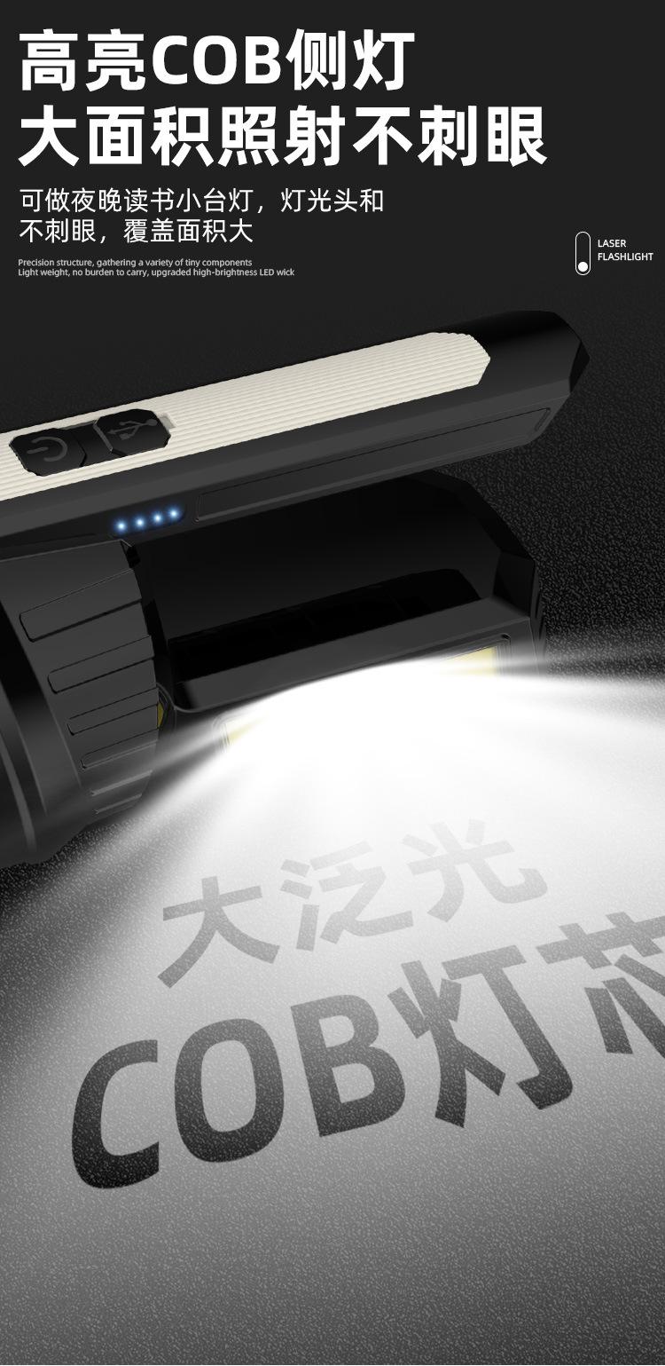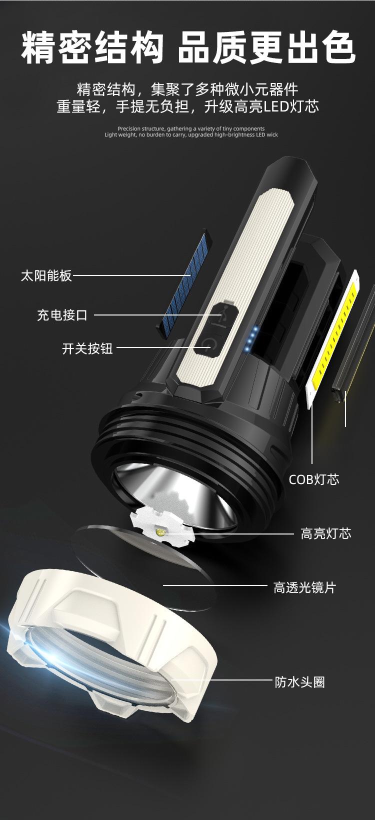 Nueva linterna portátil de luz potente, reflector COB, luz lateral, carga solar, exterior, hogar, emergencia, patrulla