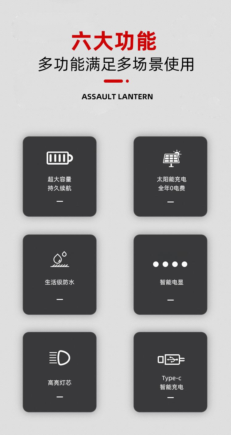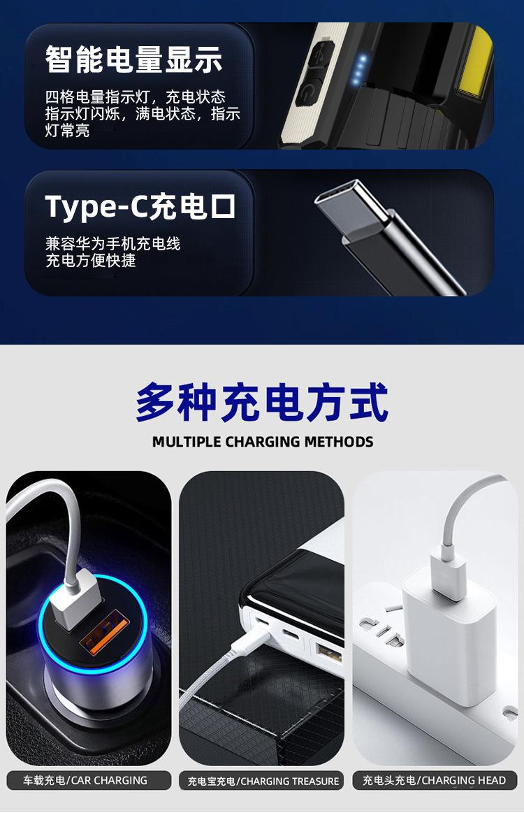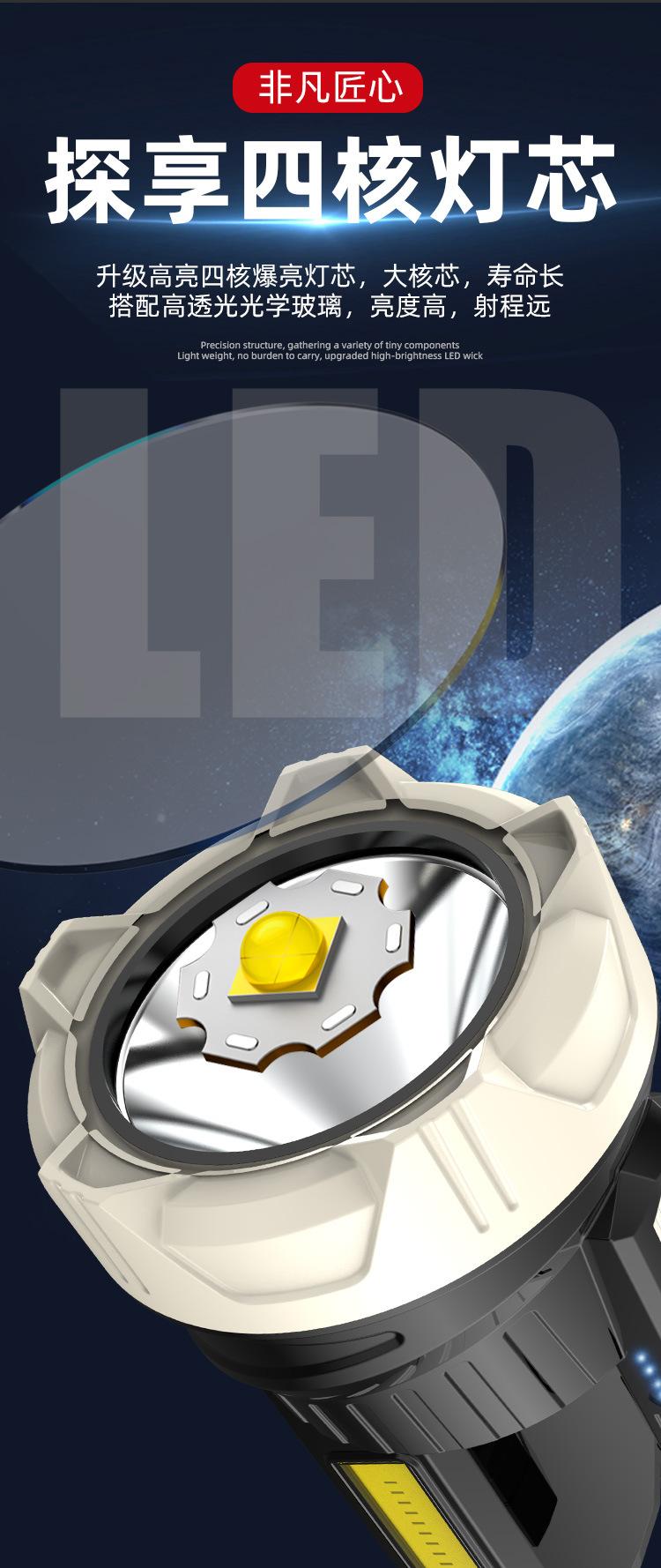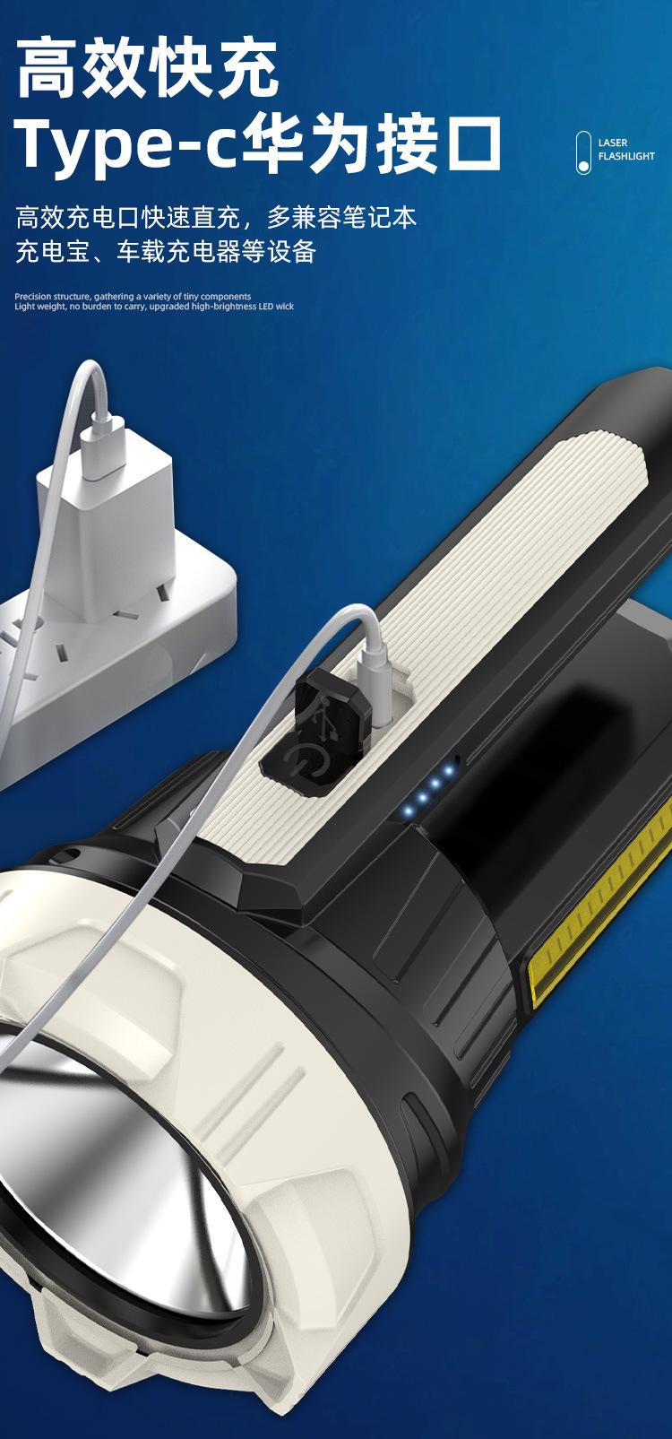 Nueva linterna portátil de luz potente, reflector COB, luz lateral, carga solar, exterior, hogar, emergencia, patrulla