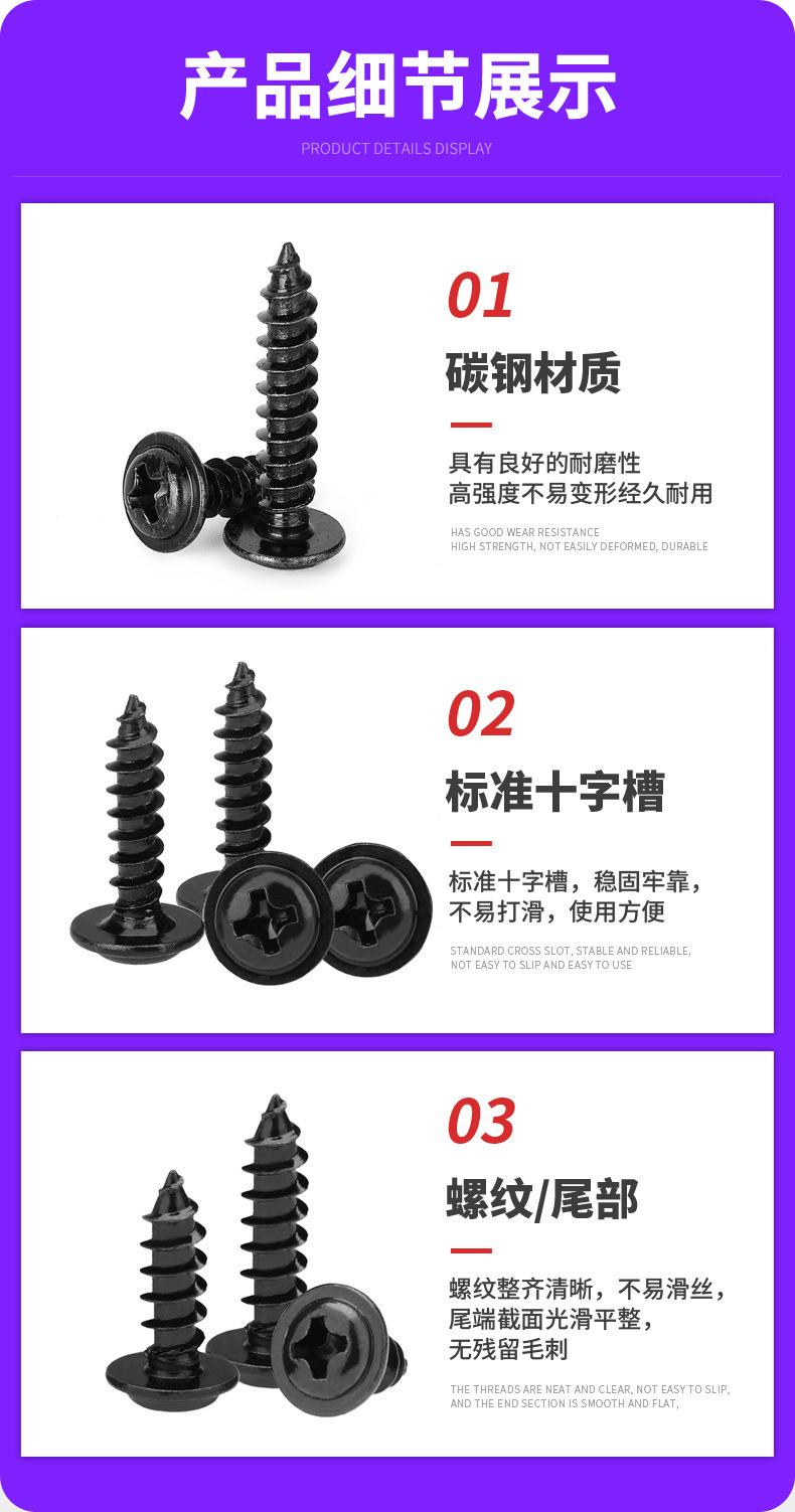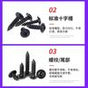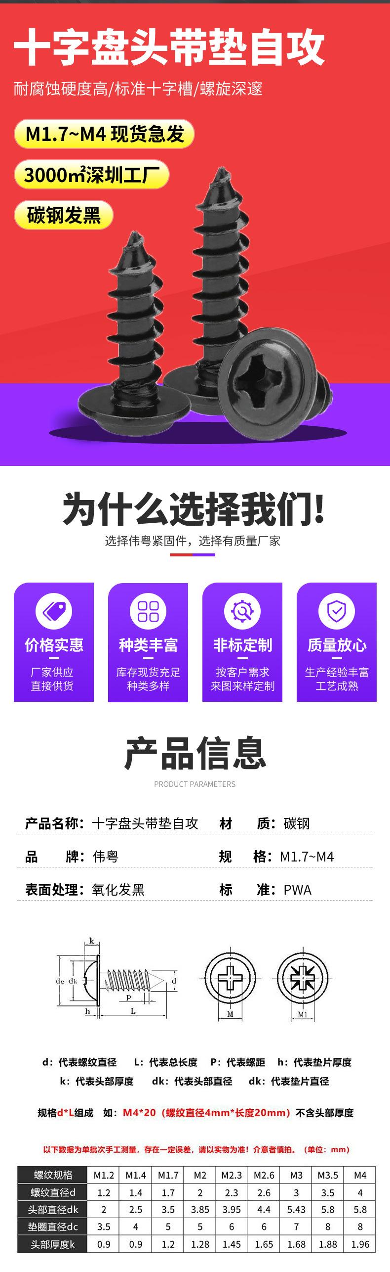 Tornillo autorroscante de cabeza plana cruzada con almohadilla M1.7-M4, acero al carbono negro PWA, cola puntiaguda con tornillo de mesón