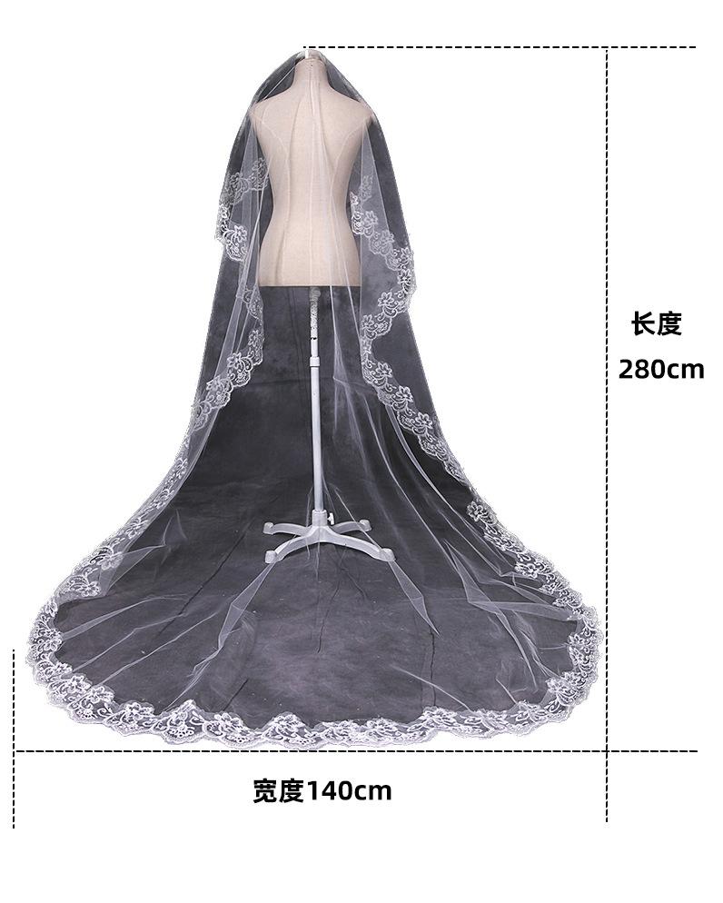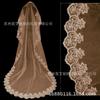 Velo de Novia 3m Largo Champagne Encaje Bordado Foto de Boda Europeo y Americano Retro Fiesta de Boda Vestido de Novia Encaje