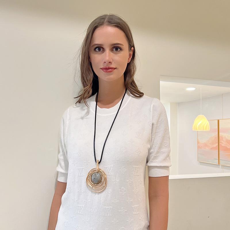 Collar nuevo de Amazon para Europa y Estados Unidos, estilo retro, grande, redondo, con cadena de suéter alta, collar largo para mujer, venta al por mayor.