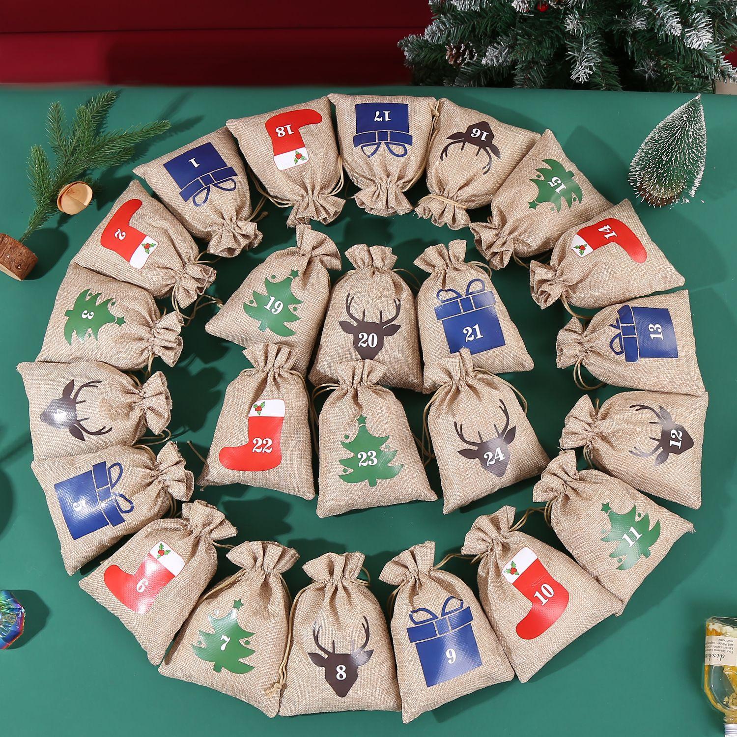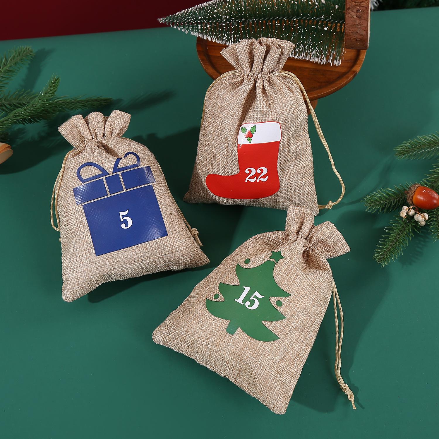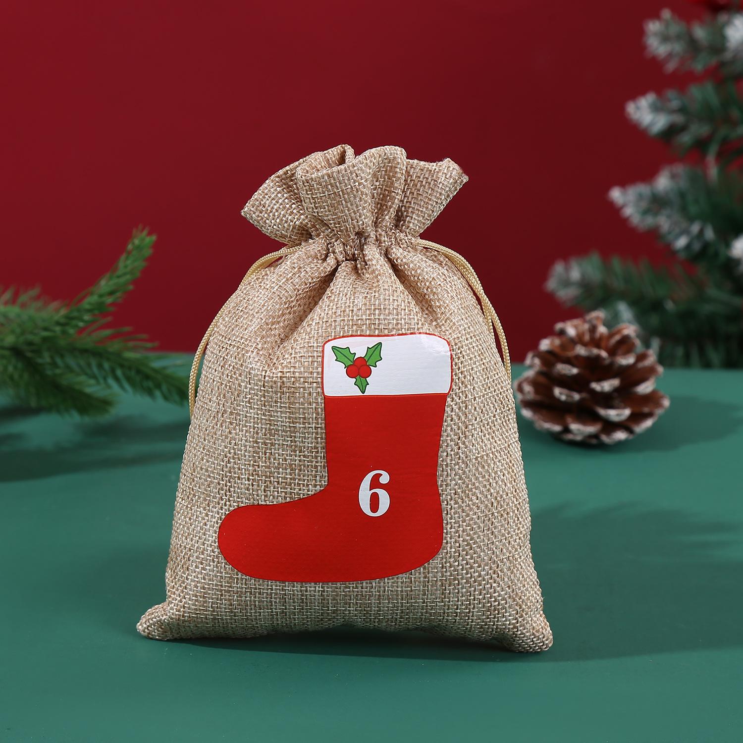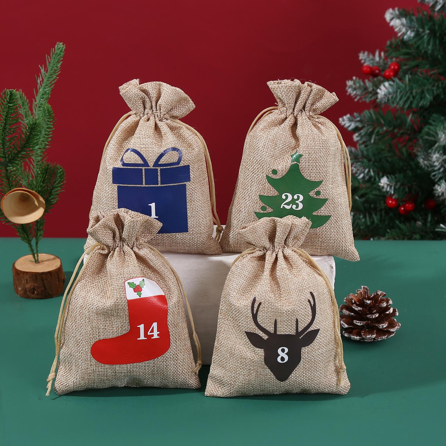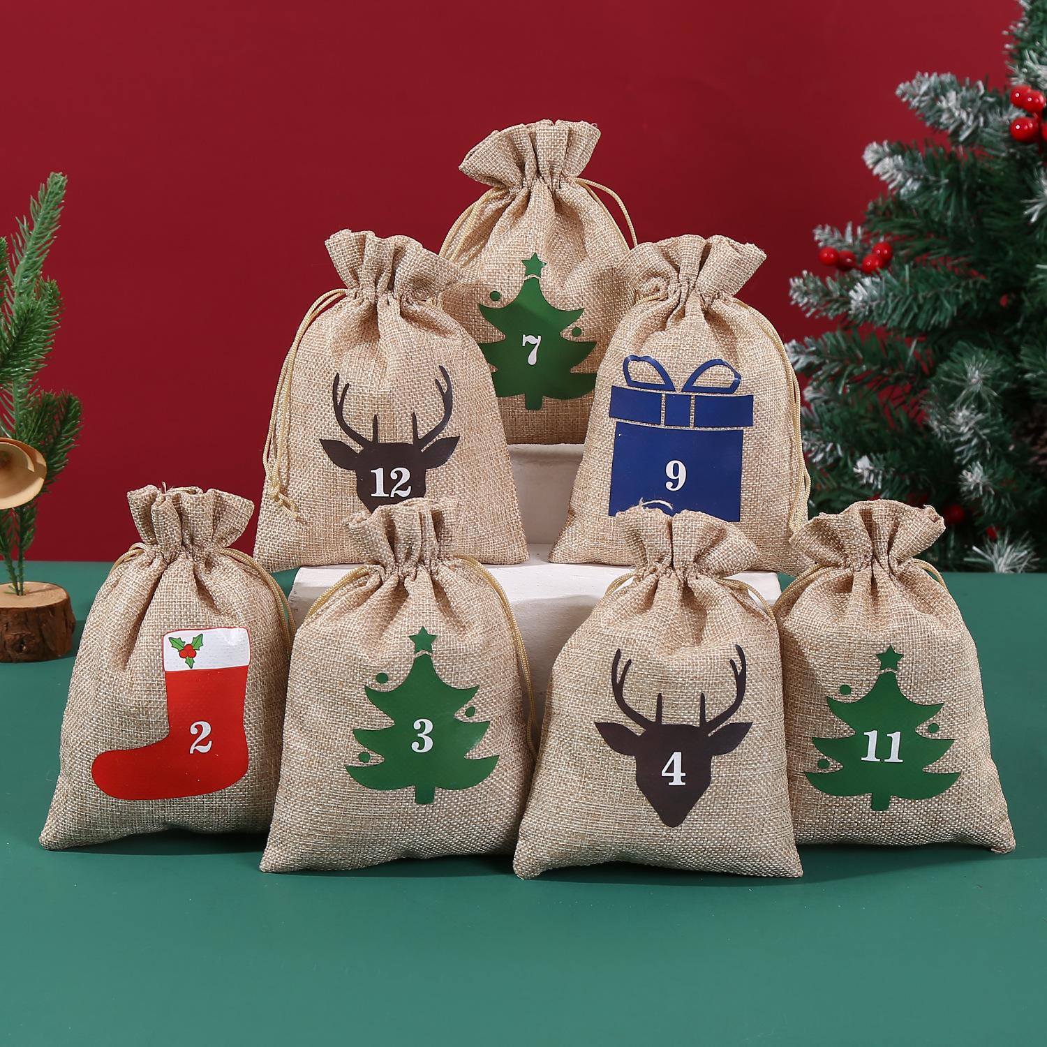 Bolsa de Navidad Lino Cordón Colorido Dibujo Animado Bolsa de Regalo Amazon Set de Navidad 24 Bolsas para Empaque de Regalo de Dulces