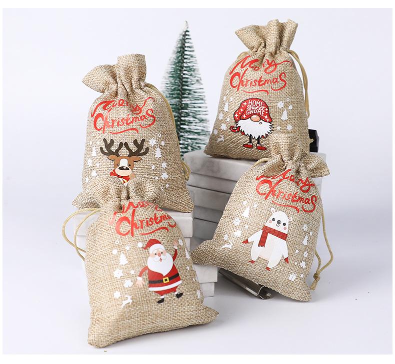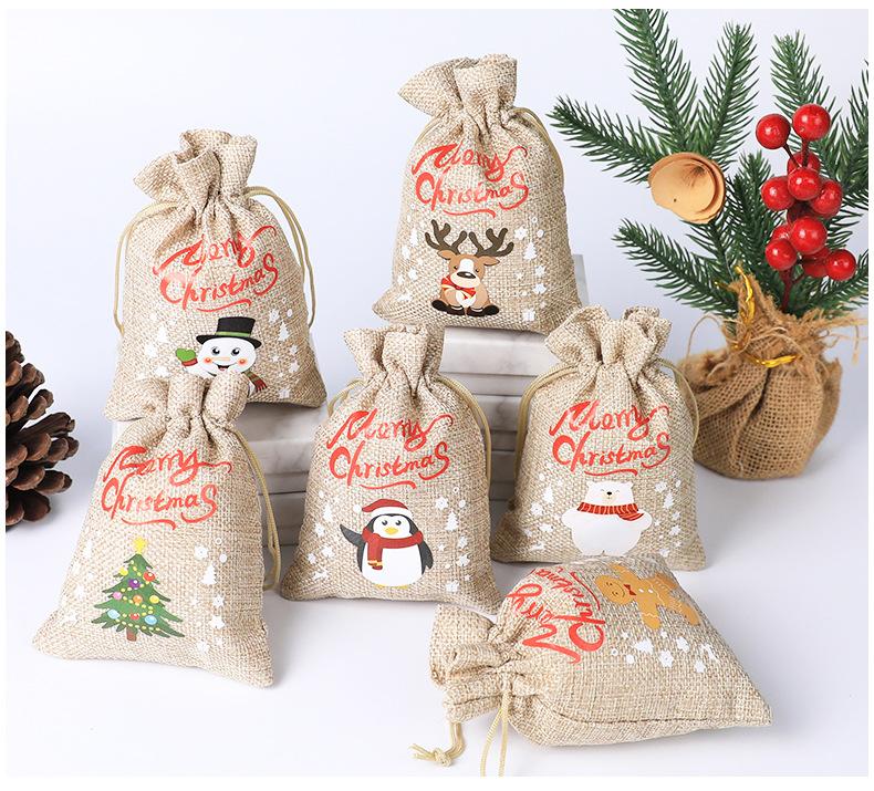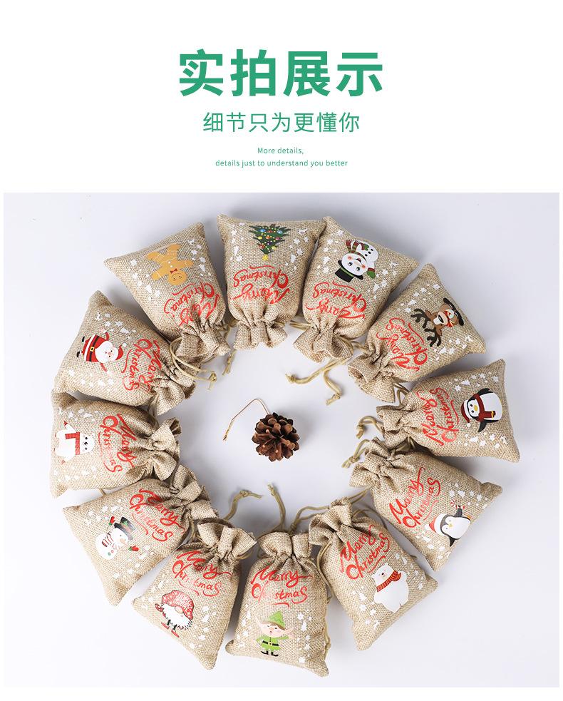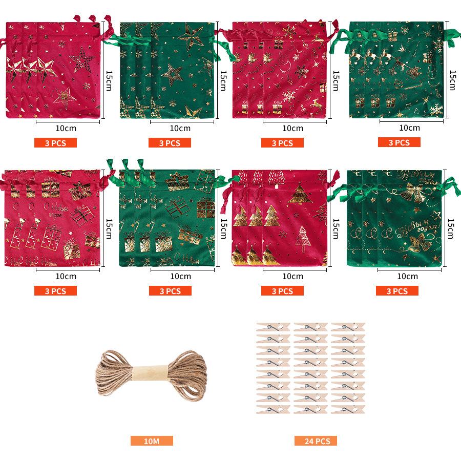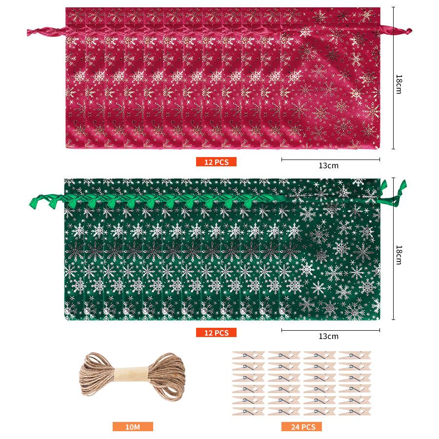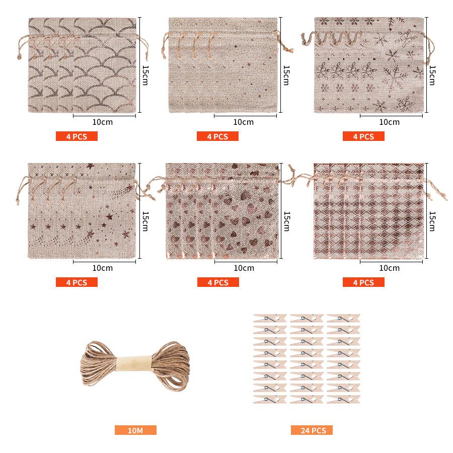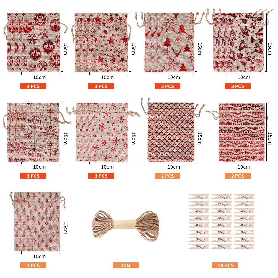 Bolsa de Navidad Lino Cordón Colorido Dibujo Animado Bolsa de Regalo Amazon Set de Navidad 24 Bolsas para Empaque de Regalo de Dulces