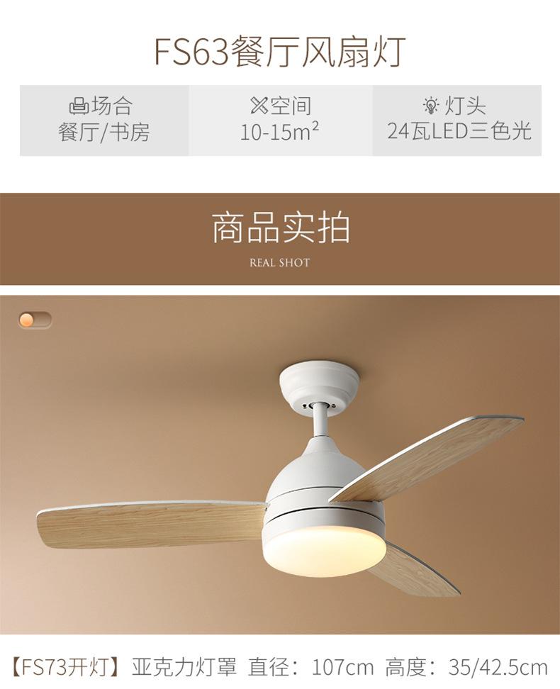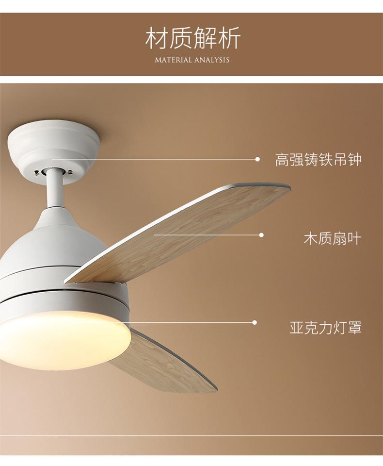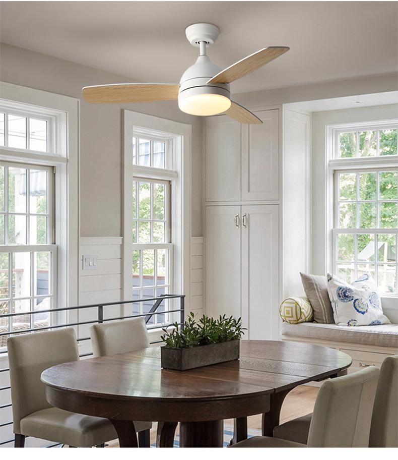 Lámpara de Ventilador Escandinava Simple Moderna Recámara Comedor Lámpara de Ventilador de Techo Led Sala de Estar Salón de Té Estudio Madera Maciza Eléctrica