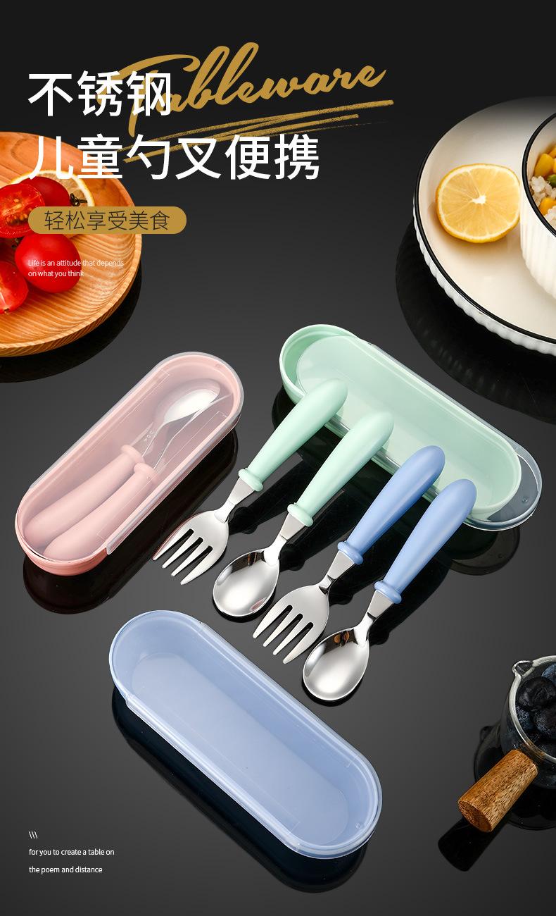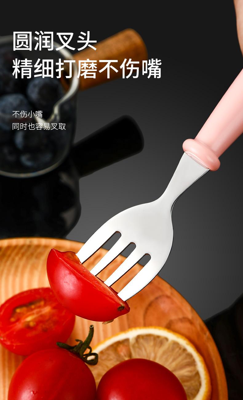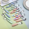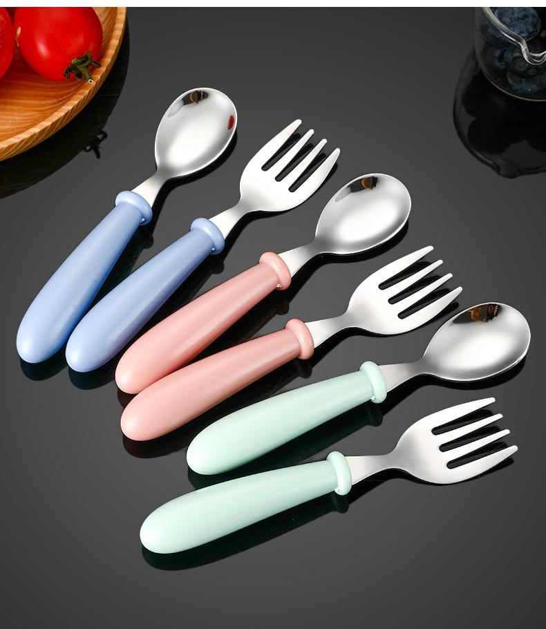 Juego de vajilla de acero inoxidable 304 para bebé, tenedor y cuchara, tres piezas, regalo de dibujos animados para madre e hijo, cuchara y tenedor con mango redondo, vajilla infantil.