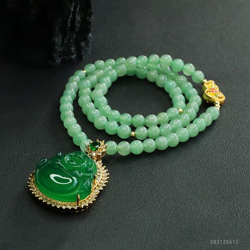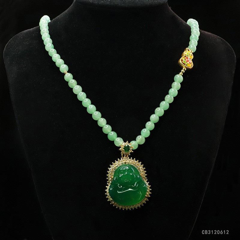 Collar de Jade Dongling Jiyu Calcedonia Ágata Verde Imperial Buda Cadena de Lana Retro Venta al por Mayor CB3120612