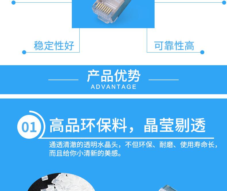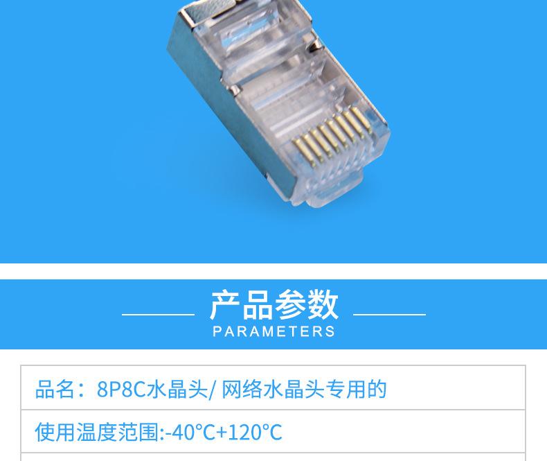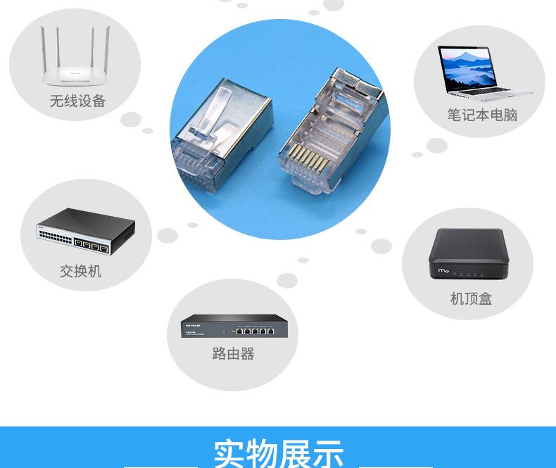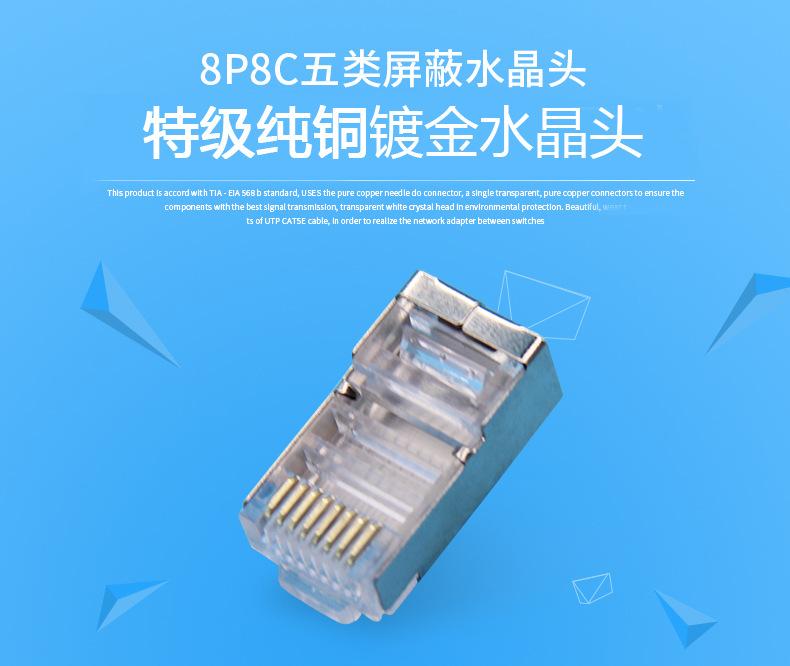 Fuente de fábrica Suministro de cabezal de cristal 8P8C Categoría 5 Cabezal de cristal blindado Cable de red con cabezal de cristal RJ45 Categoría 5 Cabezal de cristal