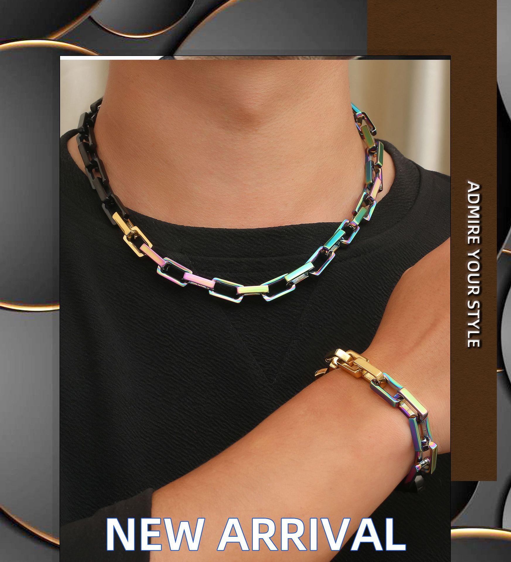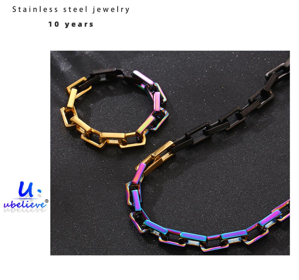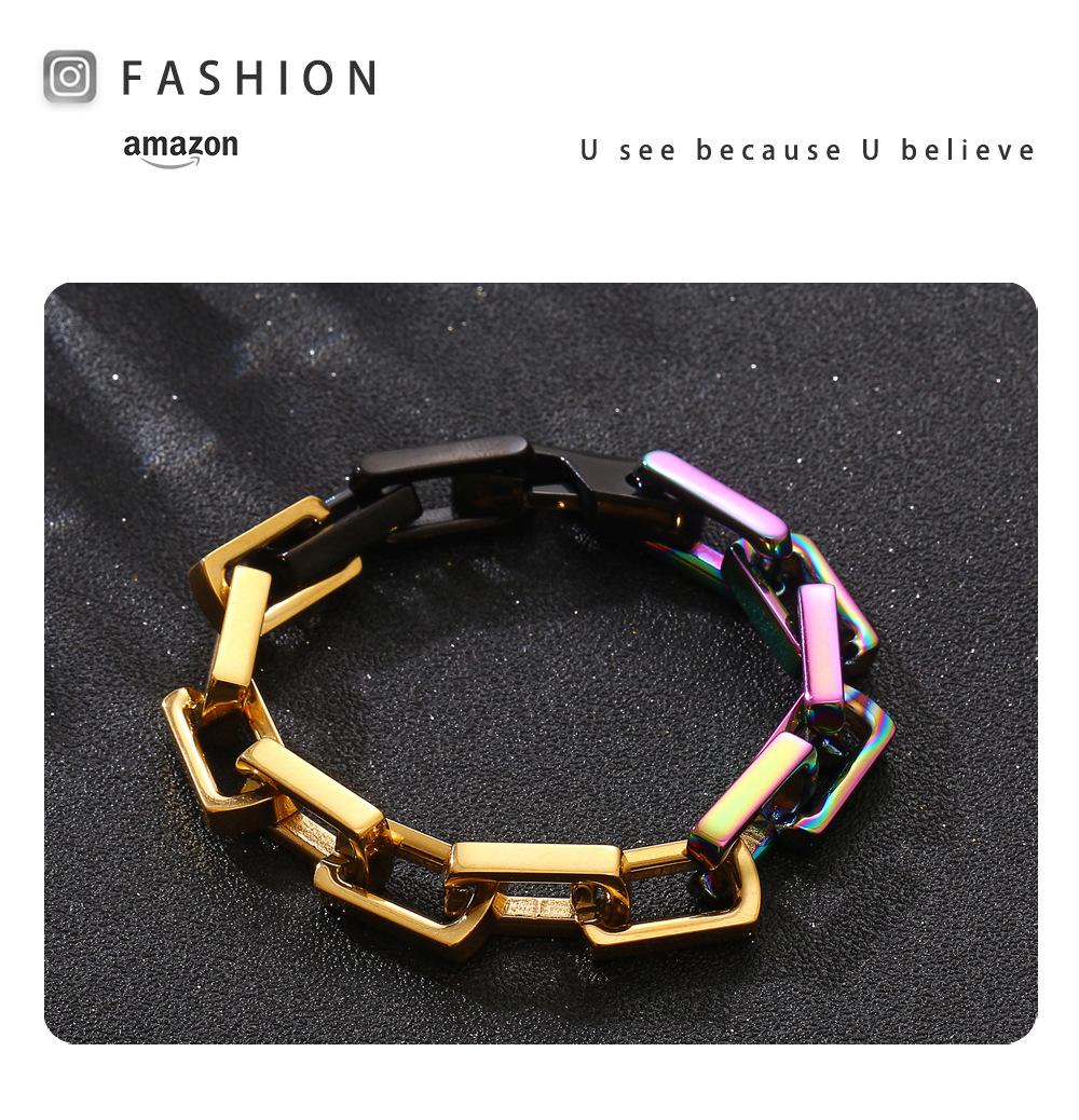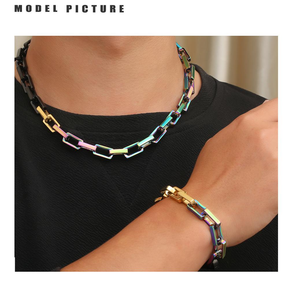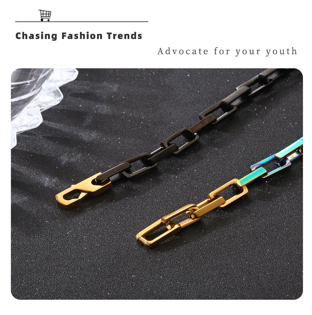 Collar personalizado de acero de titanio estilo hip hop de moda europea y americana para hombres y mujeres, pulsera colorida con cierre cuadrado de acero inoxidable, joyería al por mayor