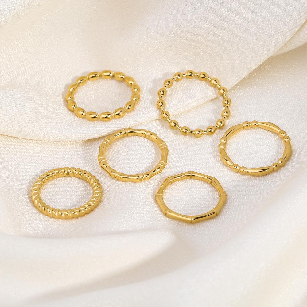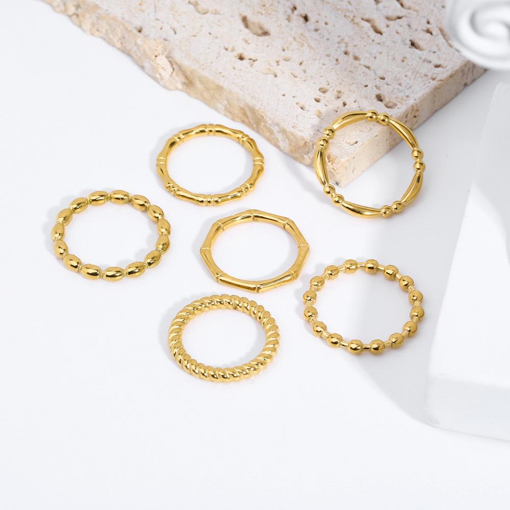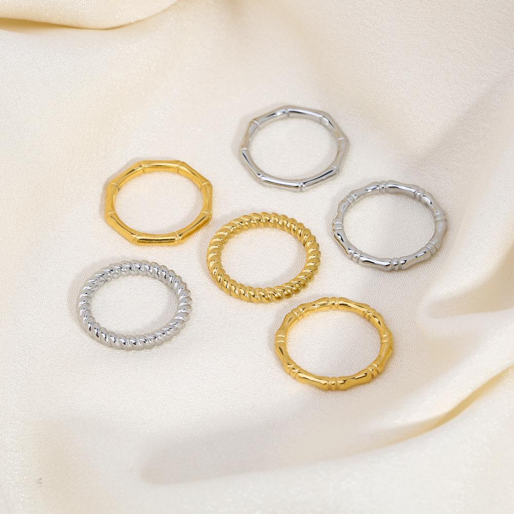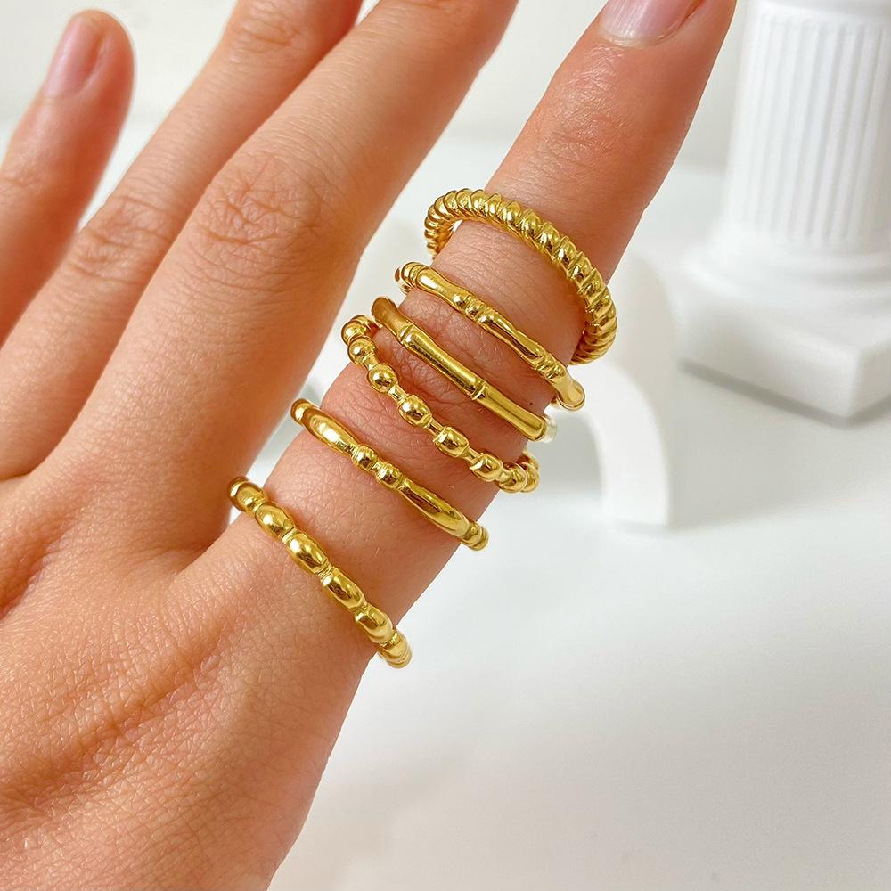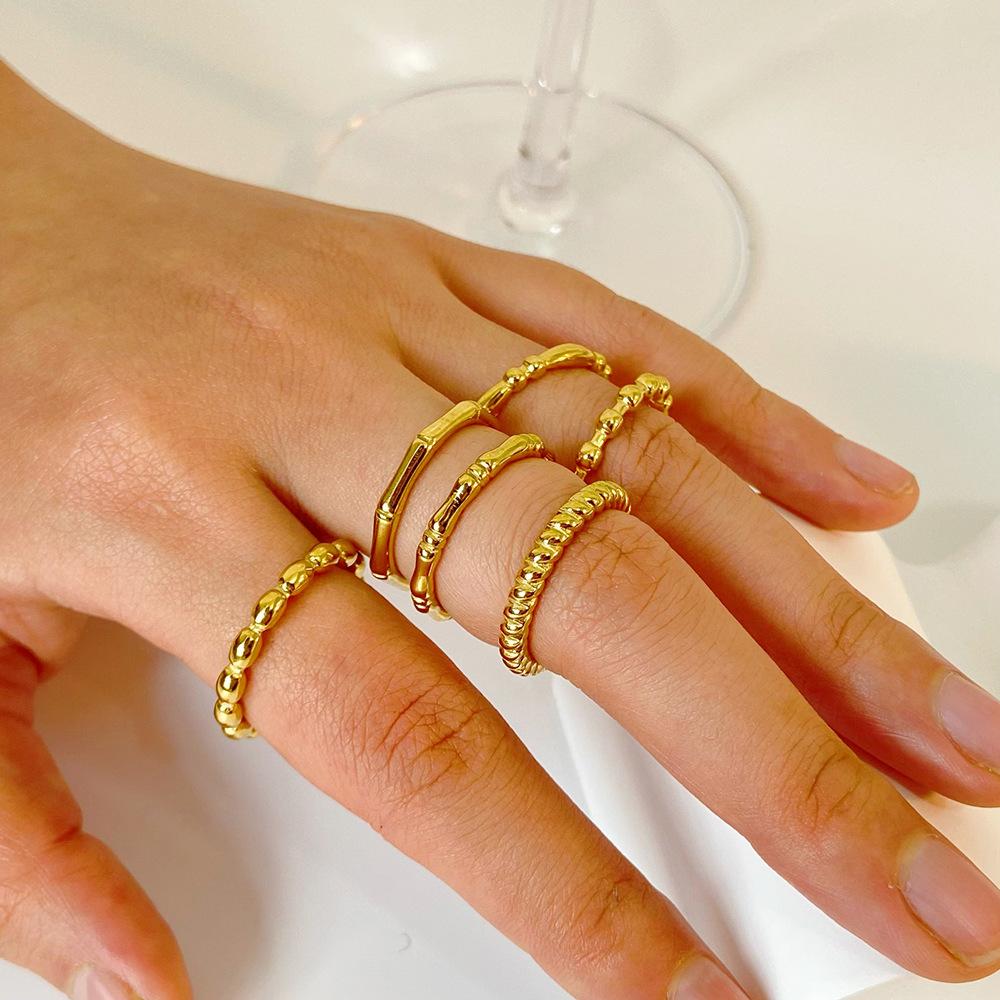 Anillo Simple Europeo y Americano Estilo Ins Venta al por Mayor Acero Inoxidable Chapado en Oro de 18K Anillo de Bambú No se Desvanece Joyería de Anillo Personalizado